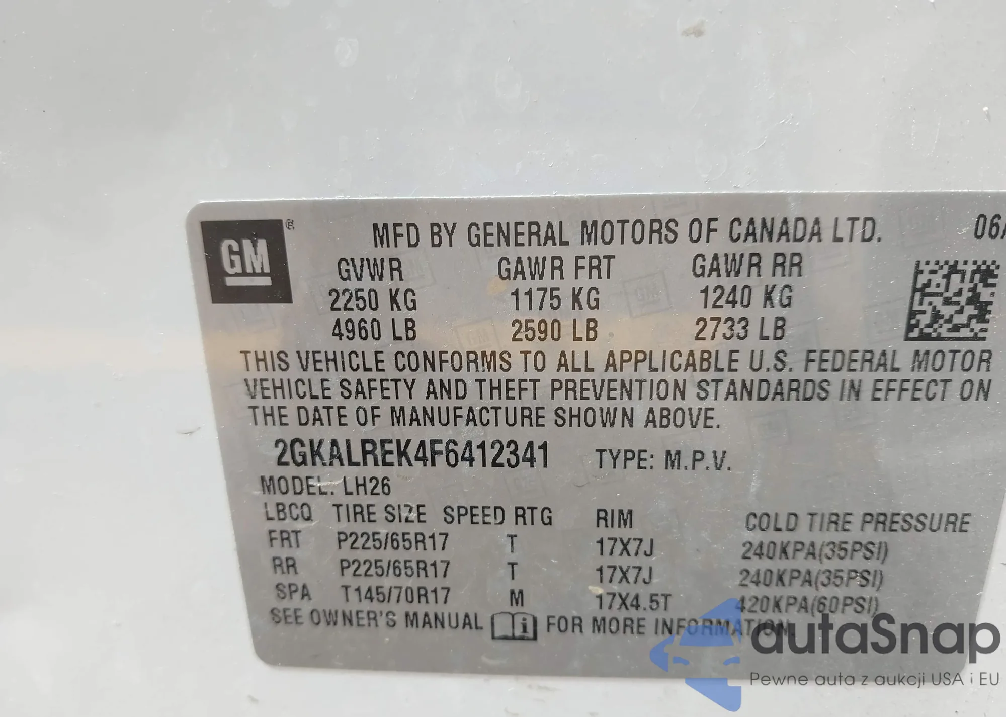 • VIN 2GKALREK4F6412341