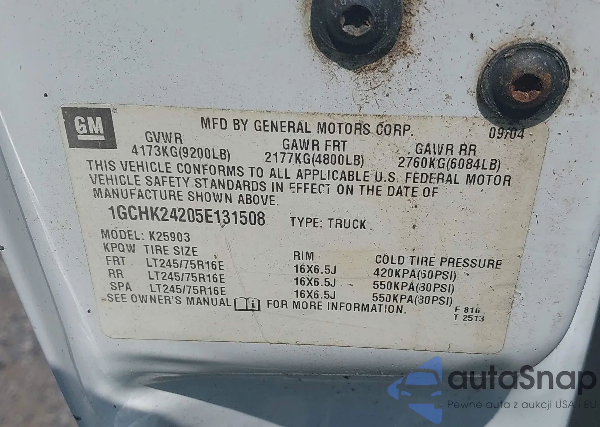 LOT: 42831439 VIN: 1GCHK24205E131508