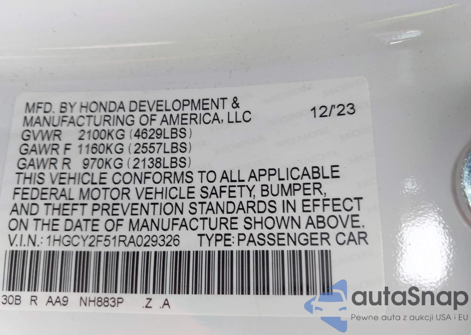 LOT: 42937461 VIN: 2HGFB2F59EH553463