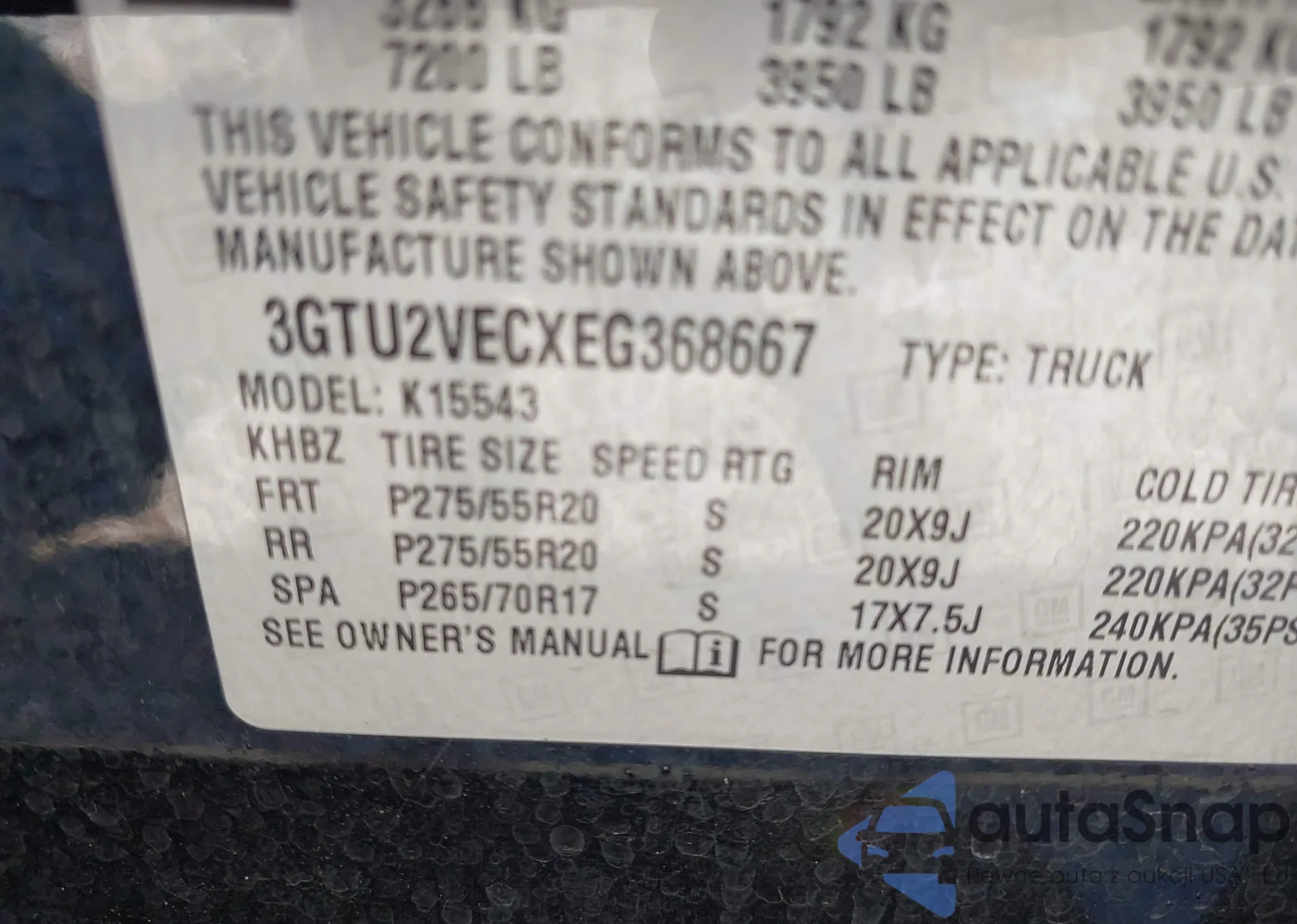 • VIN 3GTU2VECXEG368667