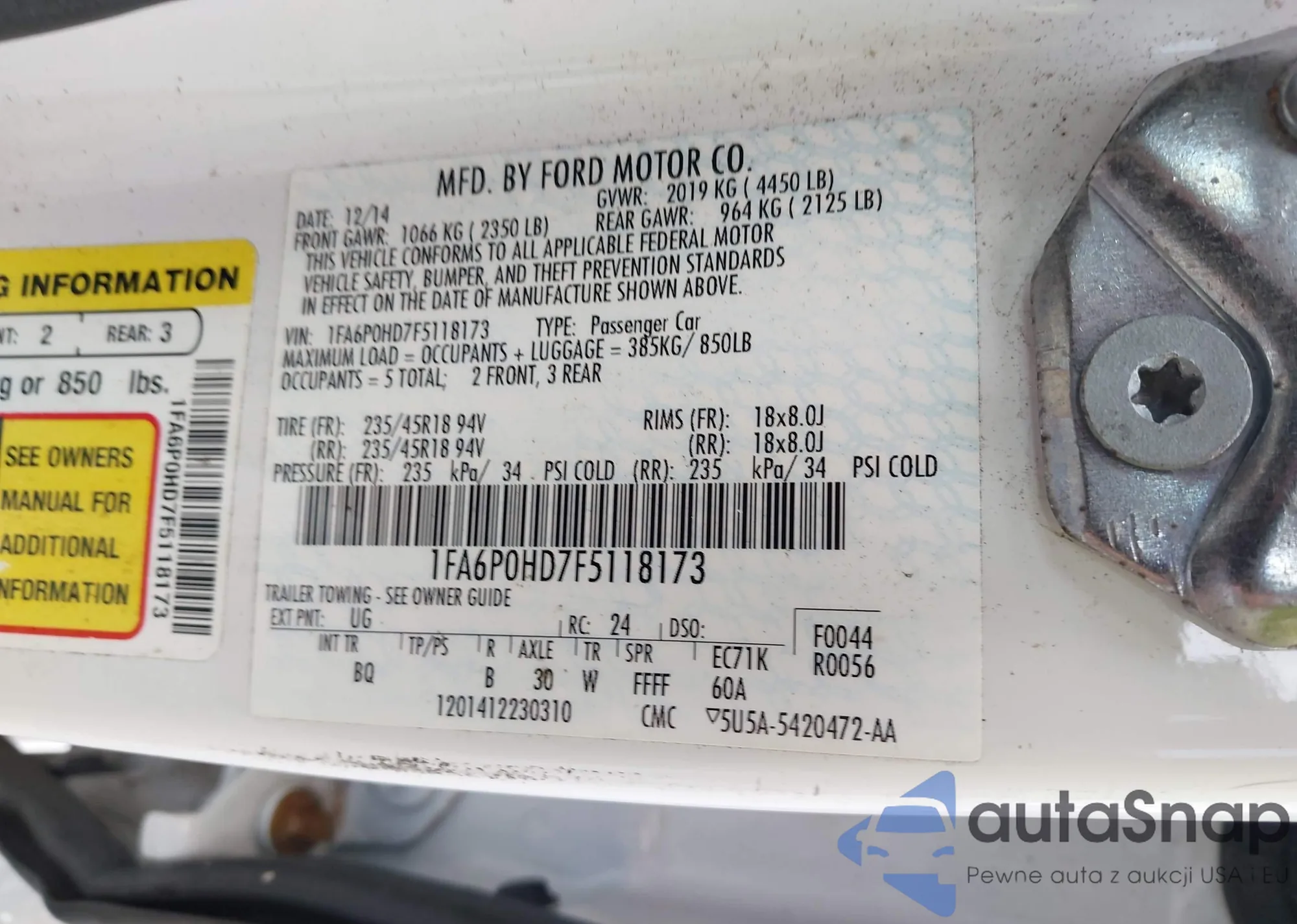 LOT: 42861265 VIN: 1FAFP55U82A141397