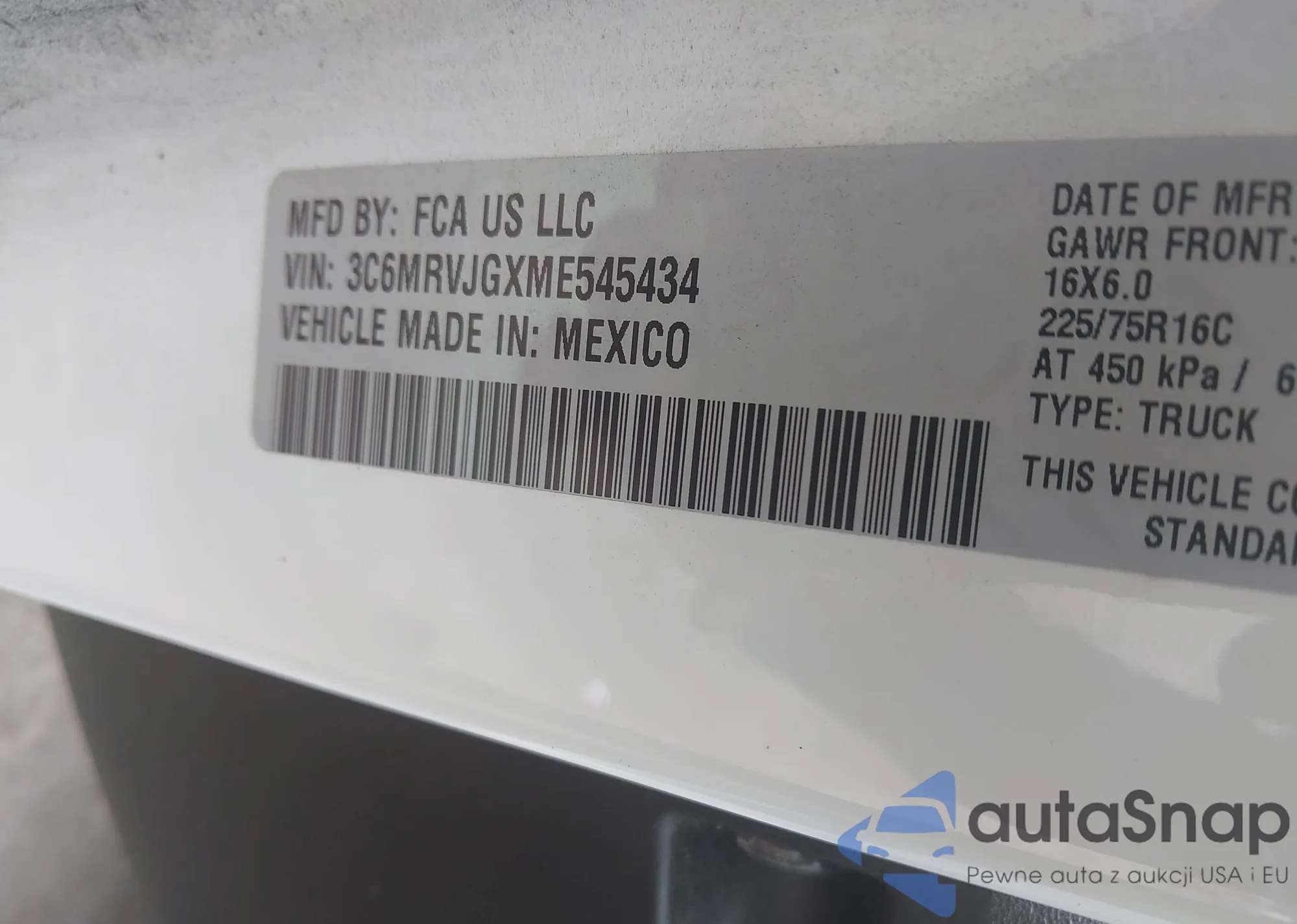 LOT: 42822202 VIN: 3C6MRVJGXME54543
