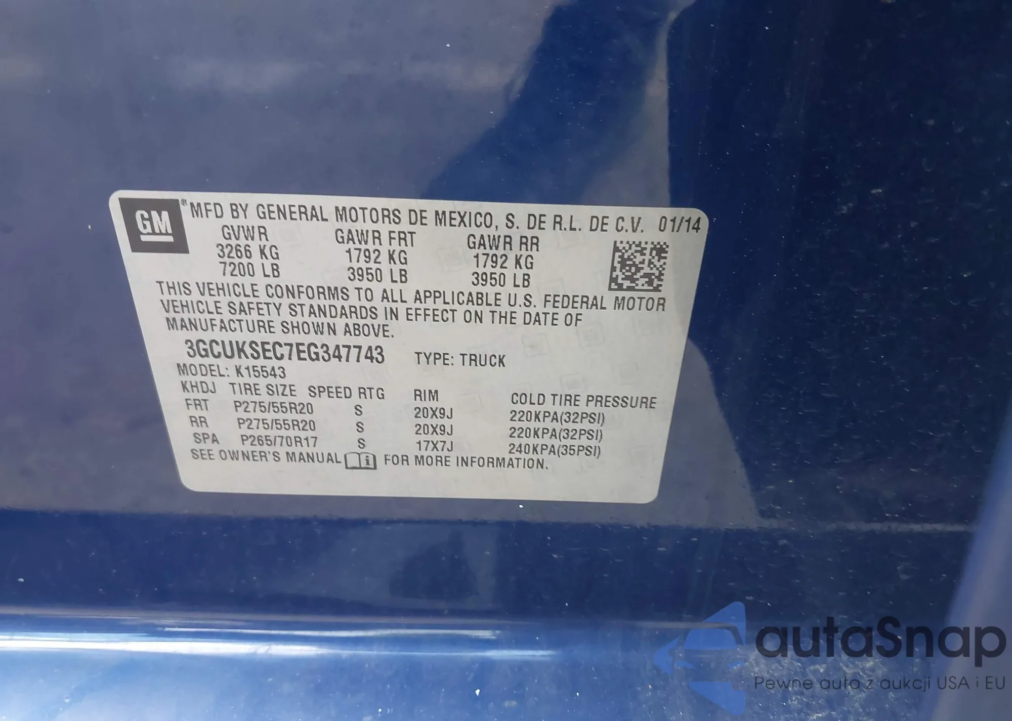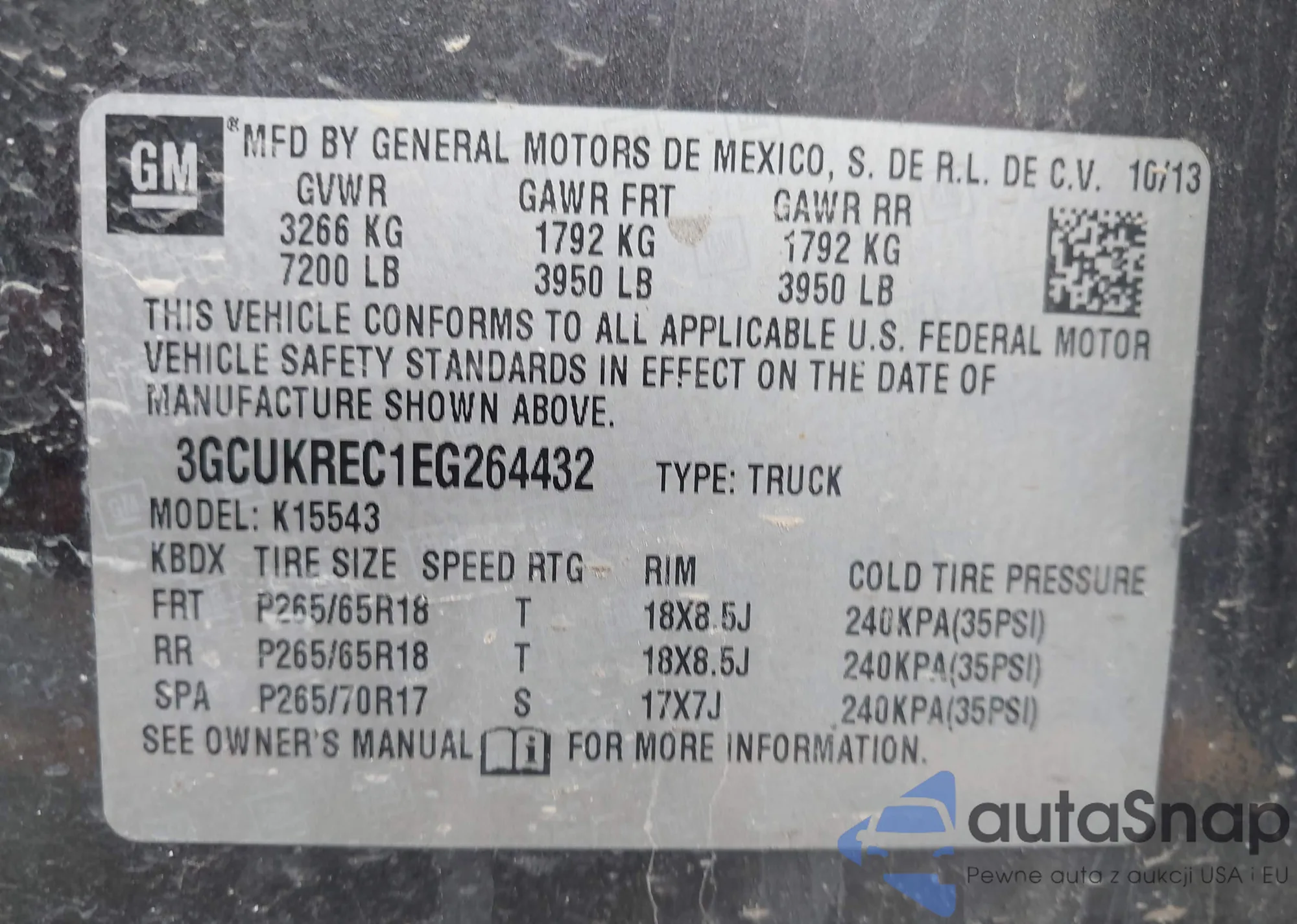 LOT: 42427450 VIN: 3GCUKREC1EG264432