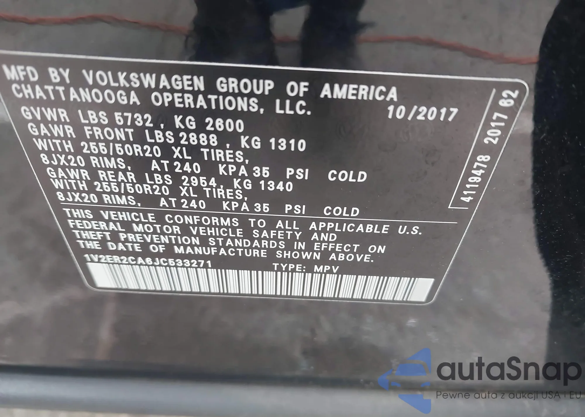 LOT: 42538056 VIN: 3N1AB7AP6JY262408