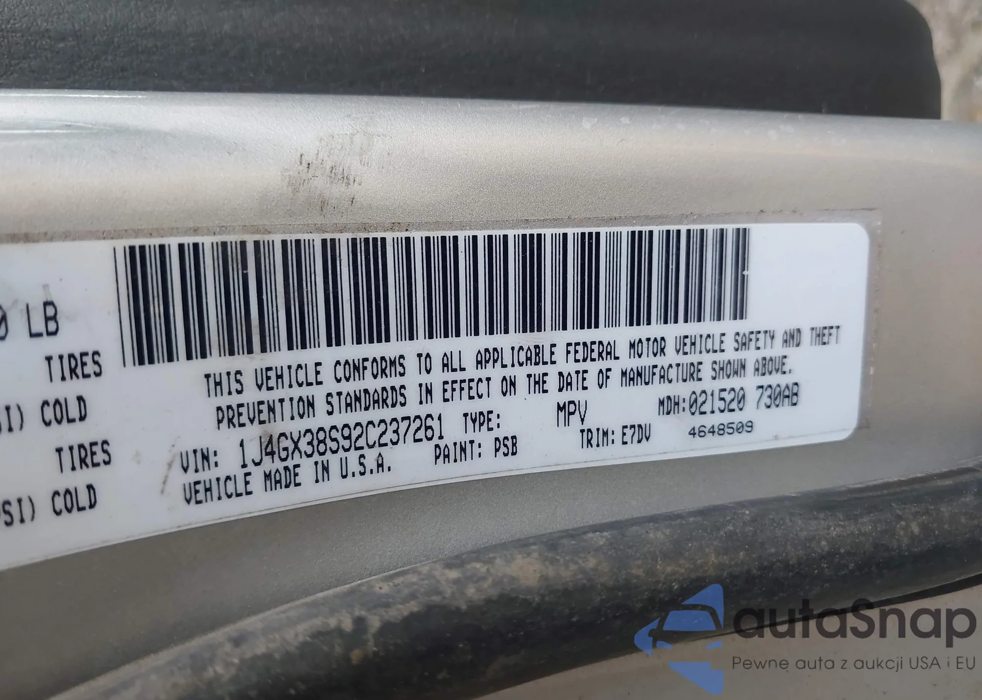 LOT: 42923904 VIN: 1J4GX38S92C237261
