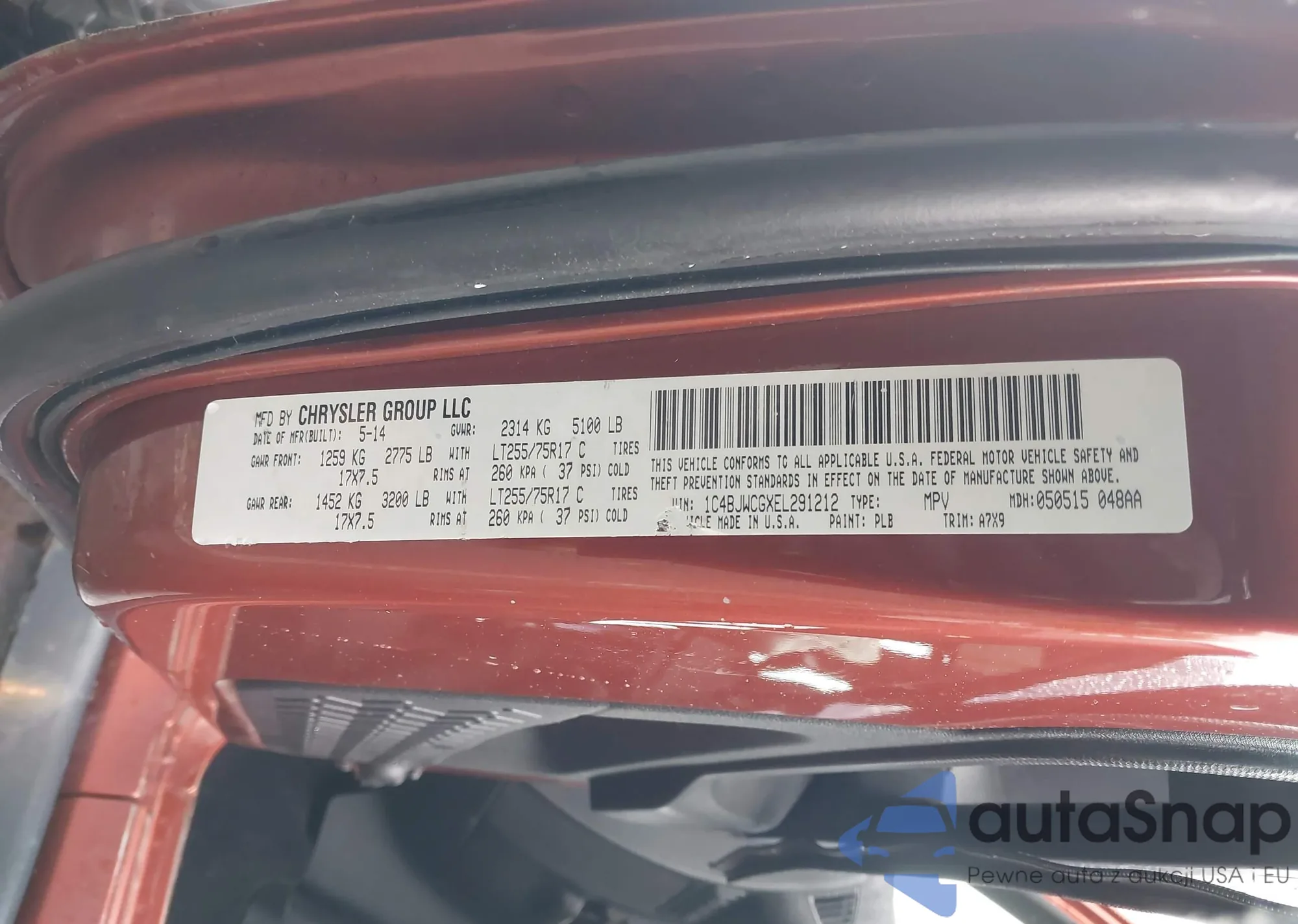 • VIN 1C4BJWCGXEL291212