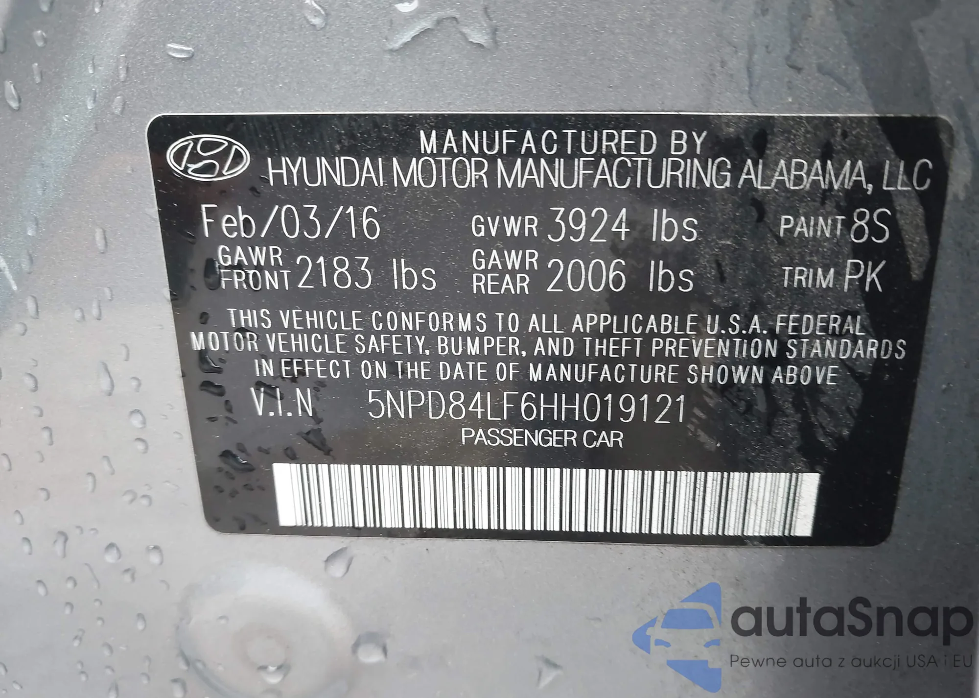 LOT: 43050235 VIN: 5NPD84LF6HH019121