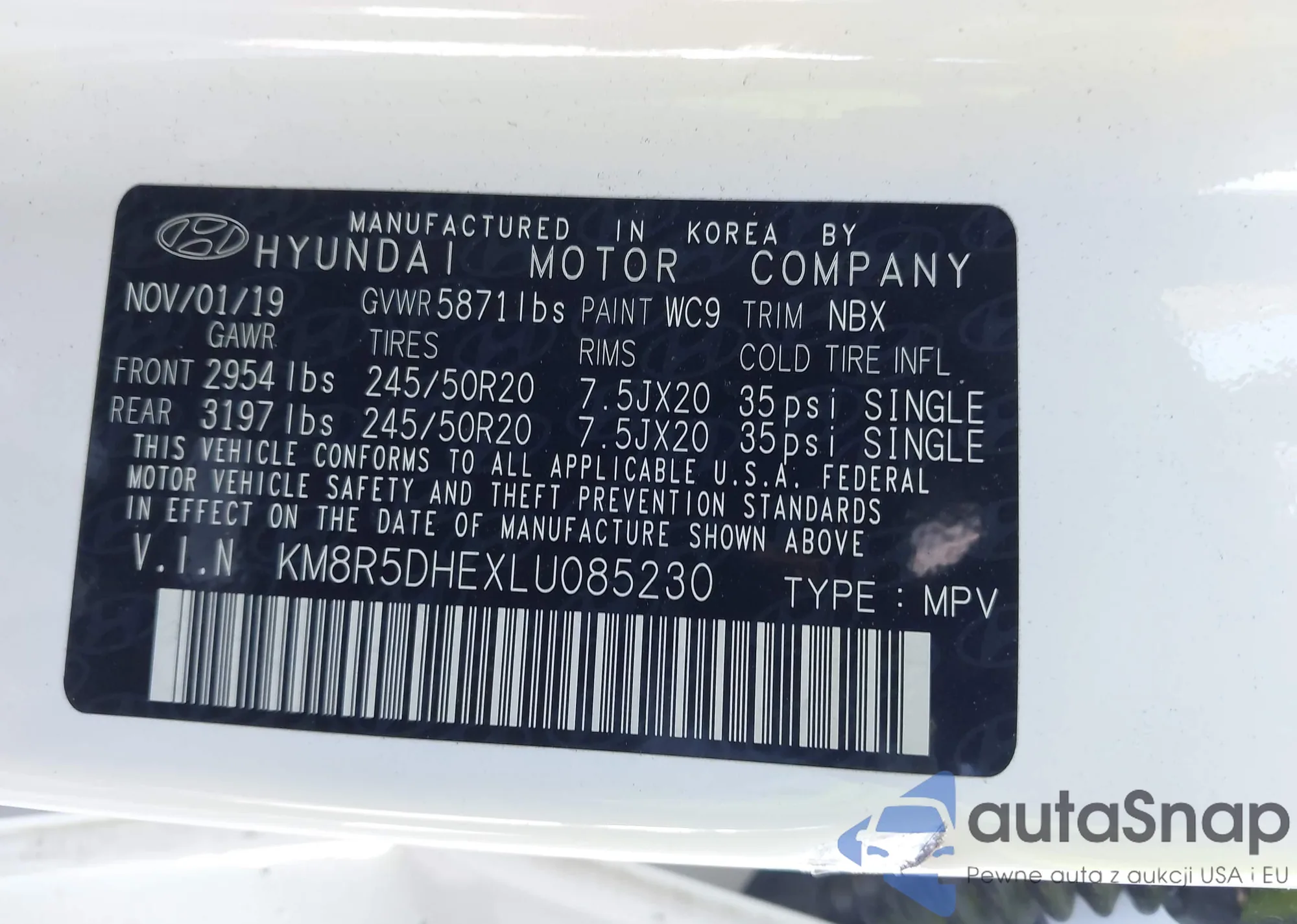 LOT: 43051979 VIN: KM8R5DHEXLU085230