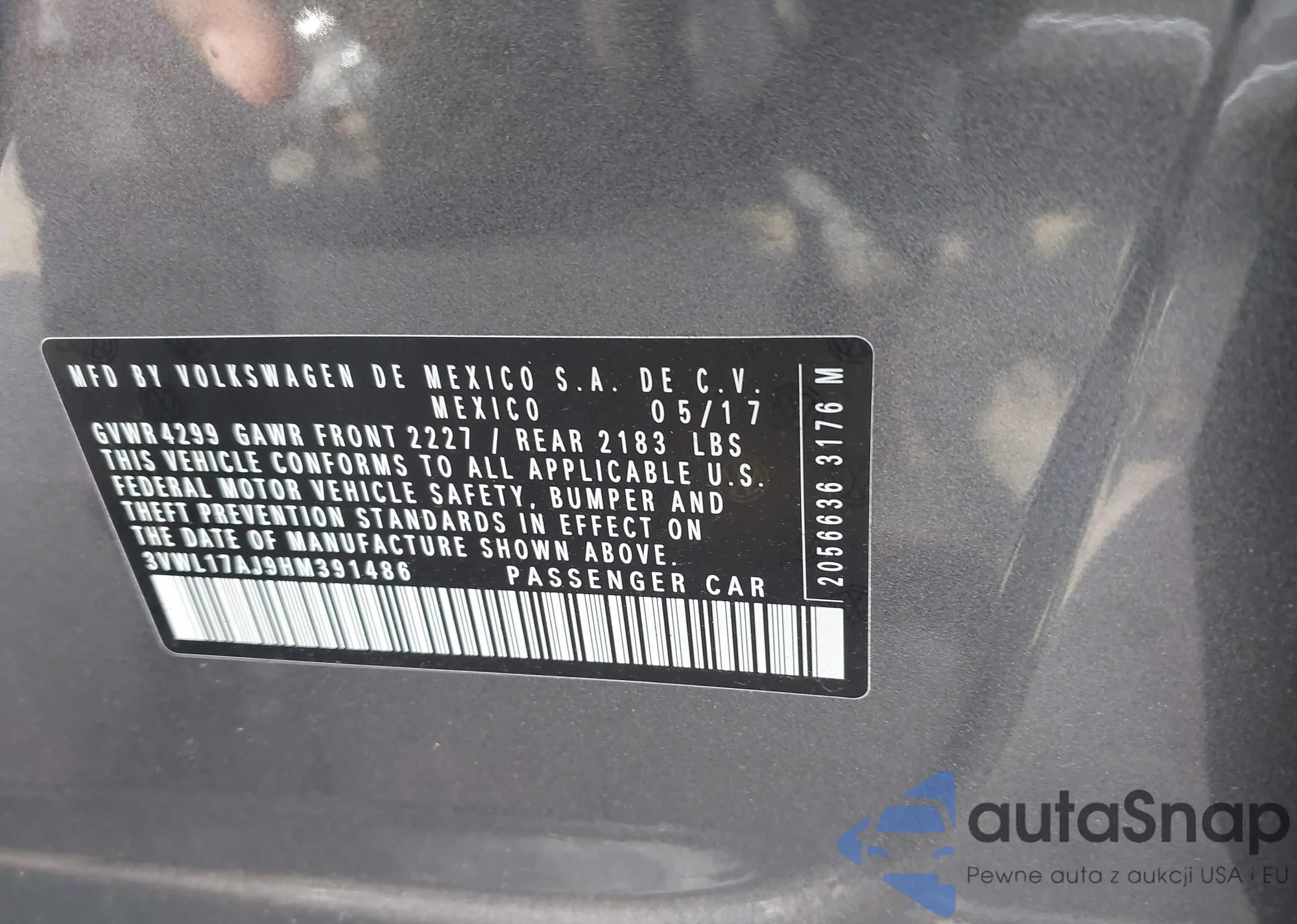• VIN 3VWL17AJ9HM391486