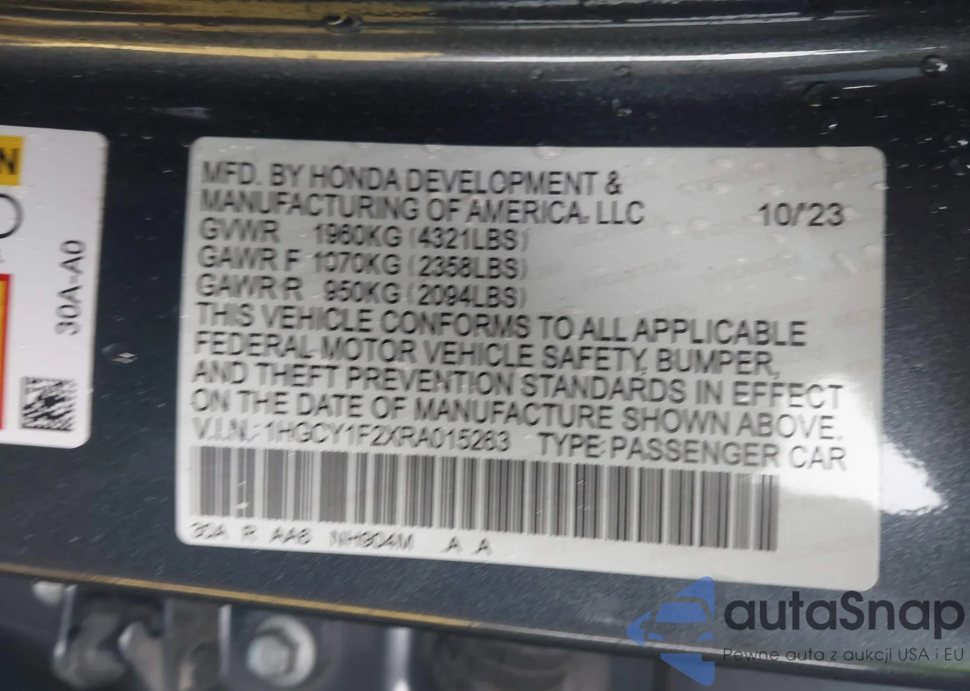 LOT: 42975151 VIN: 1HGCY1F2XRA015263