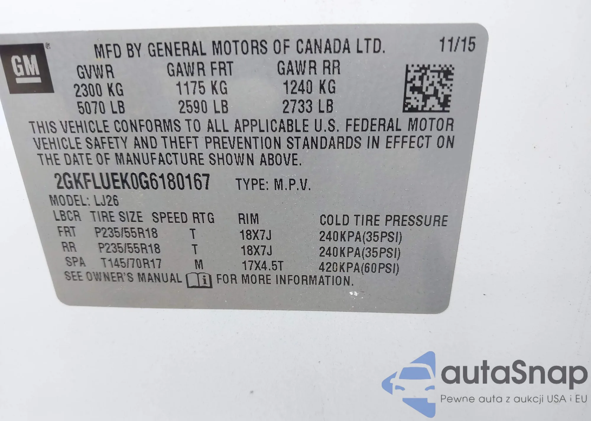 • VIN 2GKFLUEK0G6180167