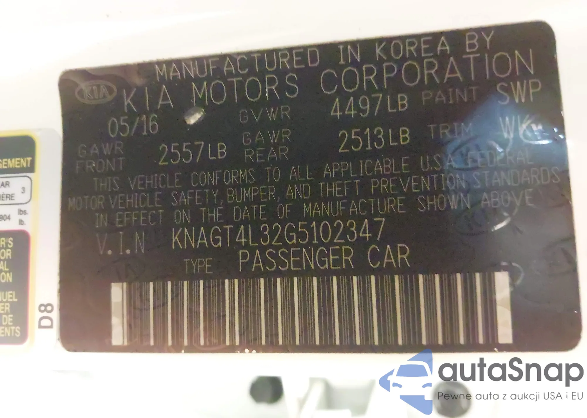 LOT: 43029062 VIN: KNAGT4L32G5102347