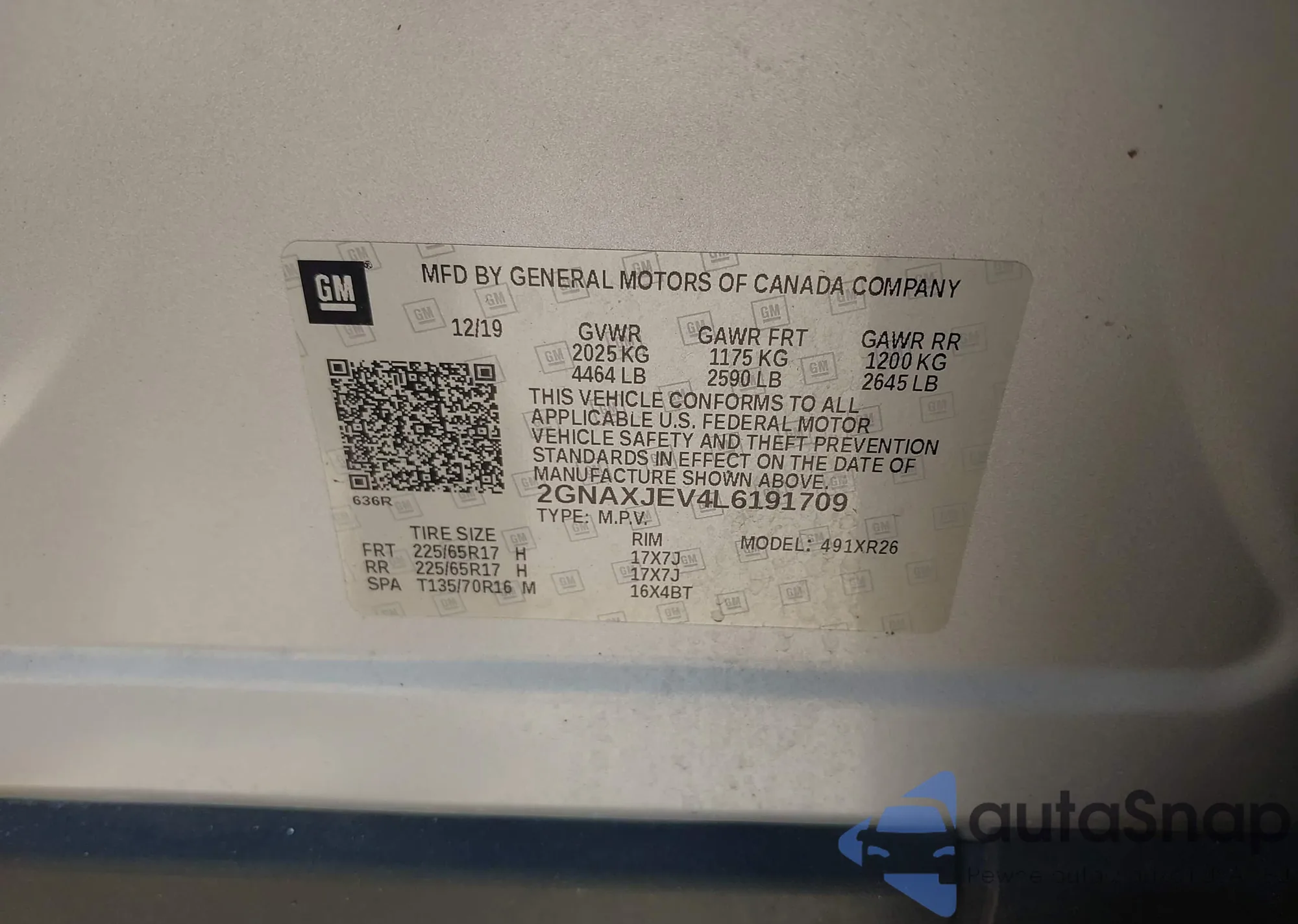 LOT: 43031606 VIN: 2GNAXJEV4L6191709