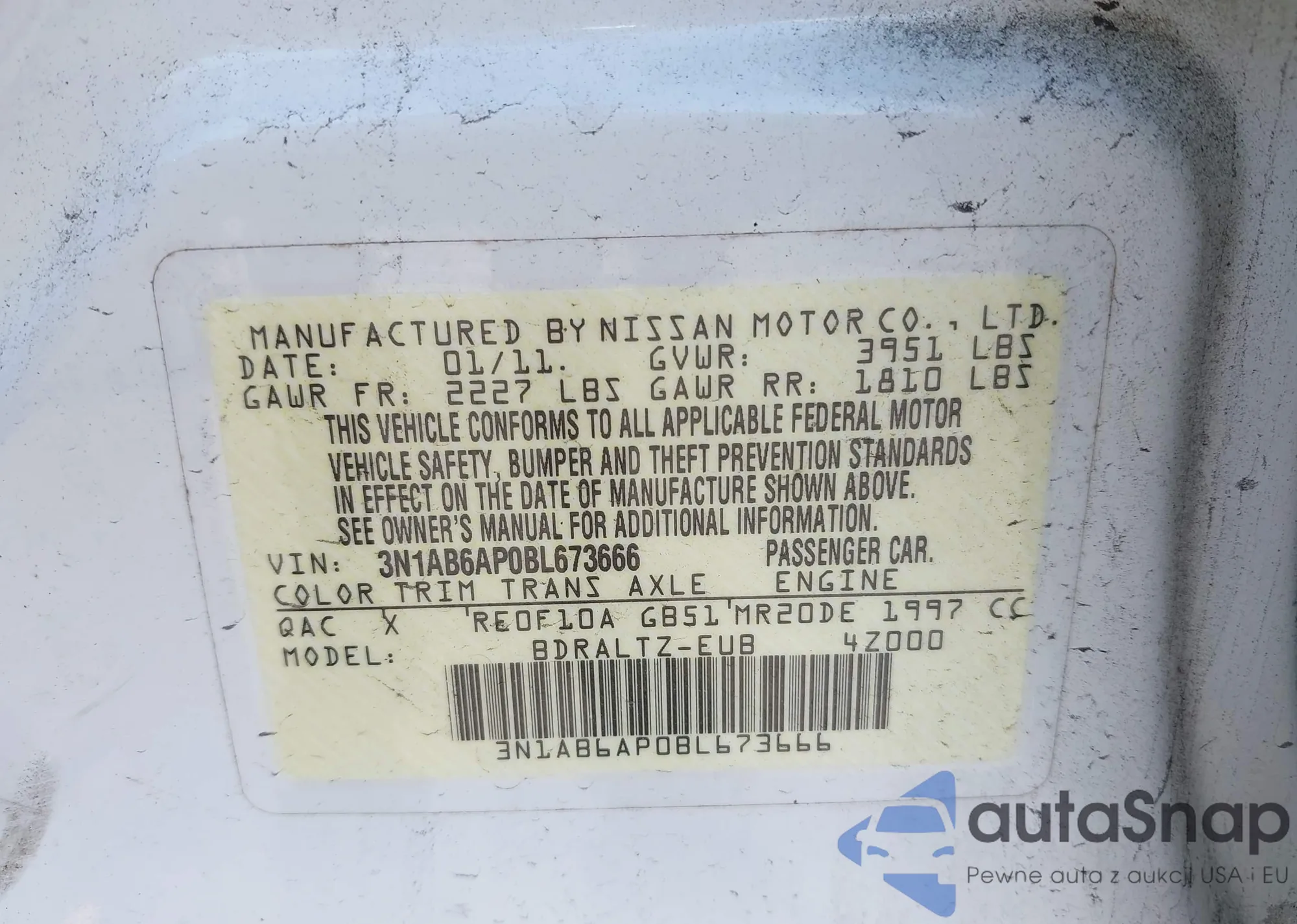 • VIN 3N1AB6AP0BL673666