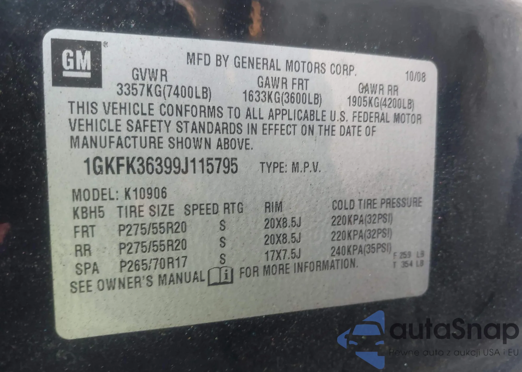 • VIN 1GKFK36399J115795