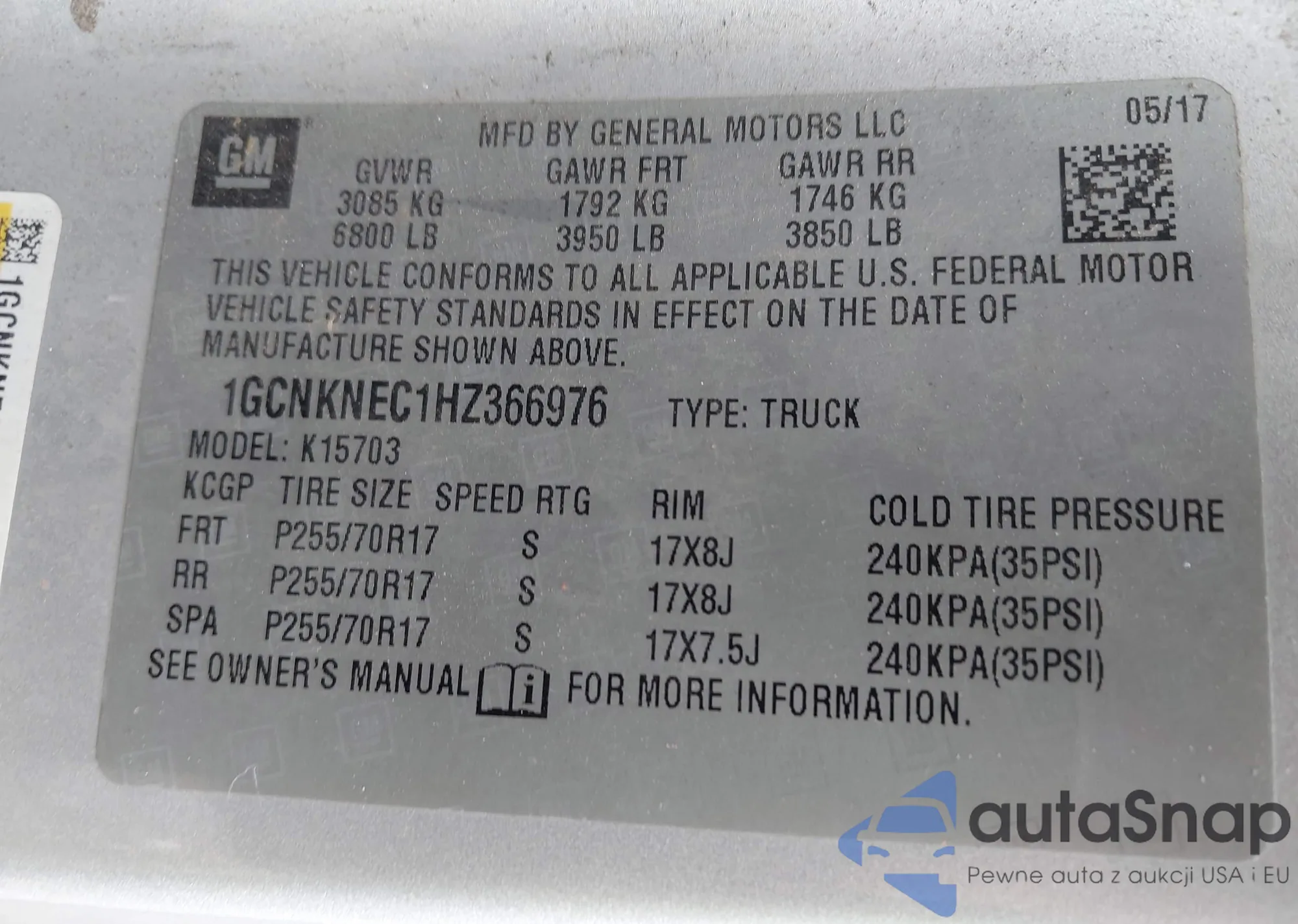 • VIN 1GCNKNEC1HZ366976
