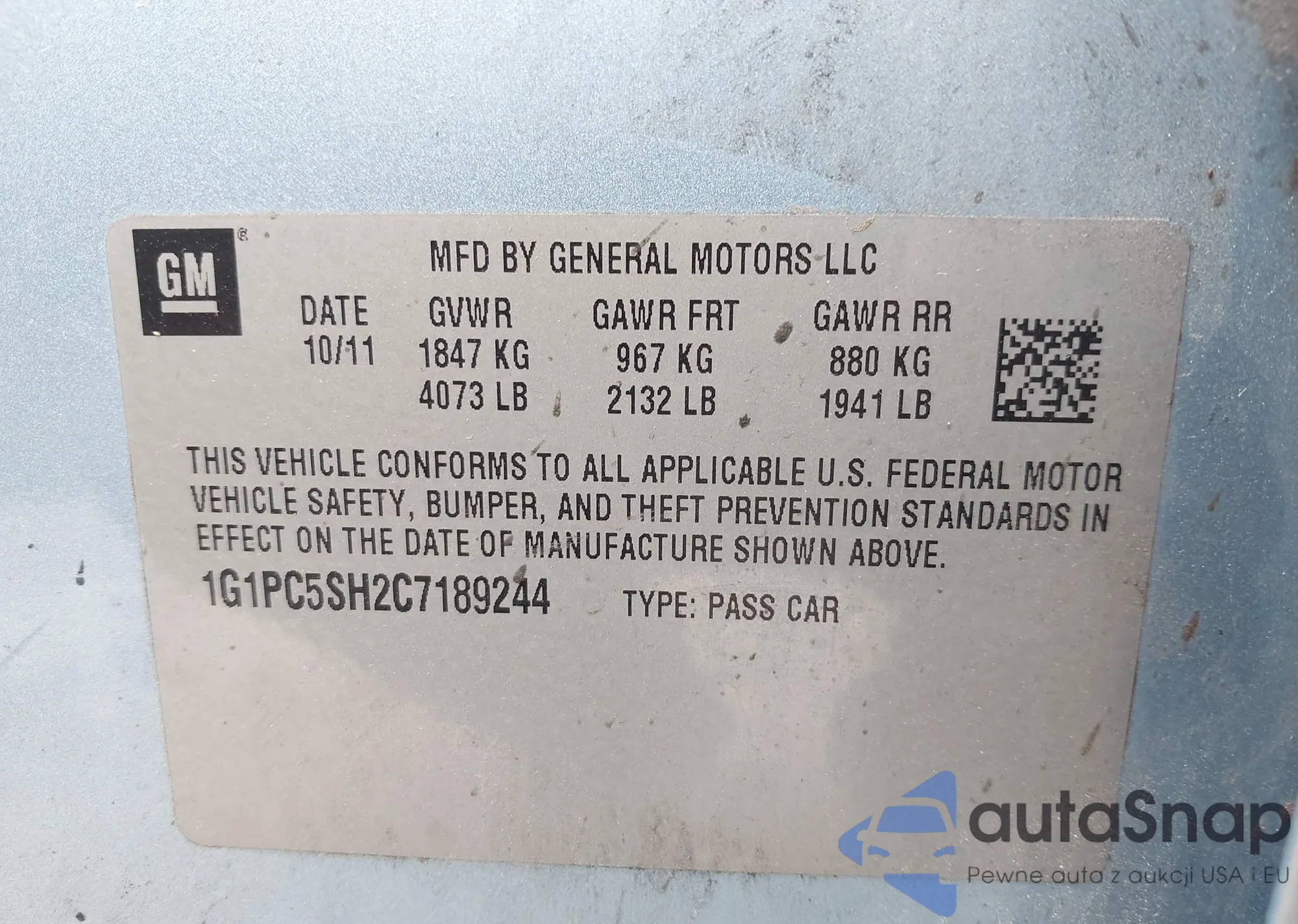 • VIN 1G1PC5SH2C7189244