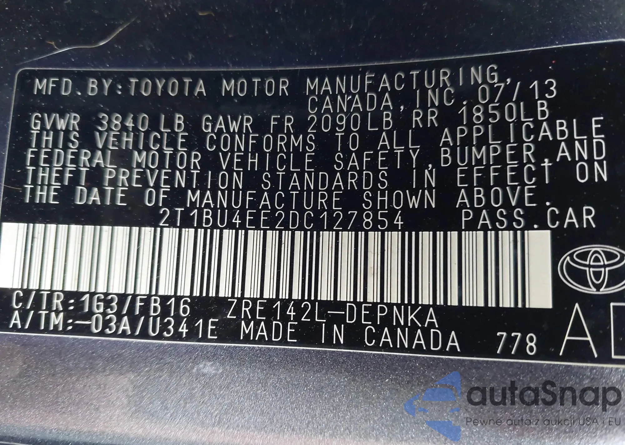 • VIN 2T1BU4EE2DC127854