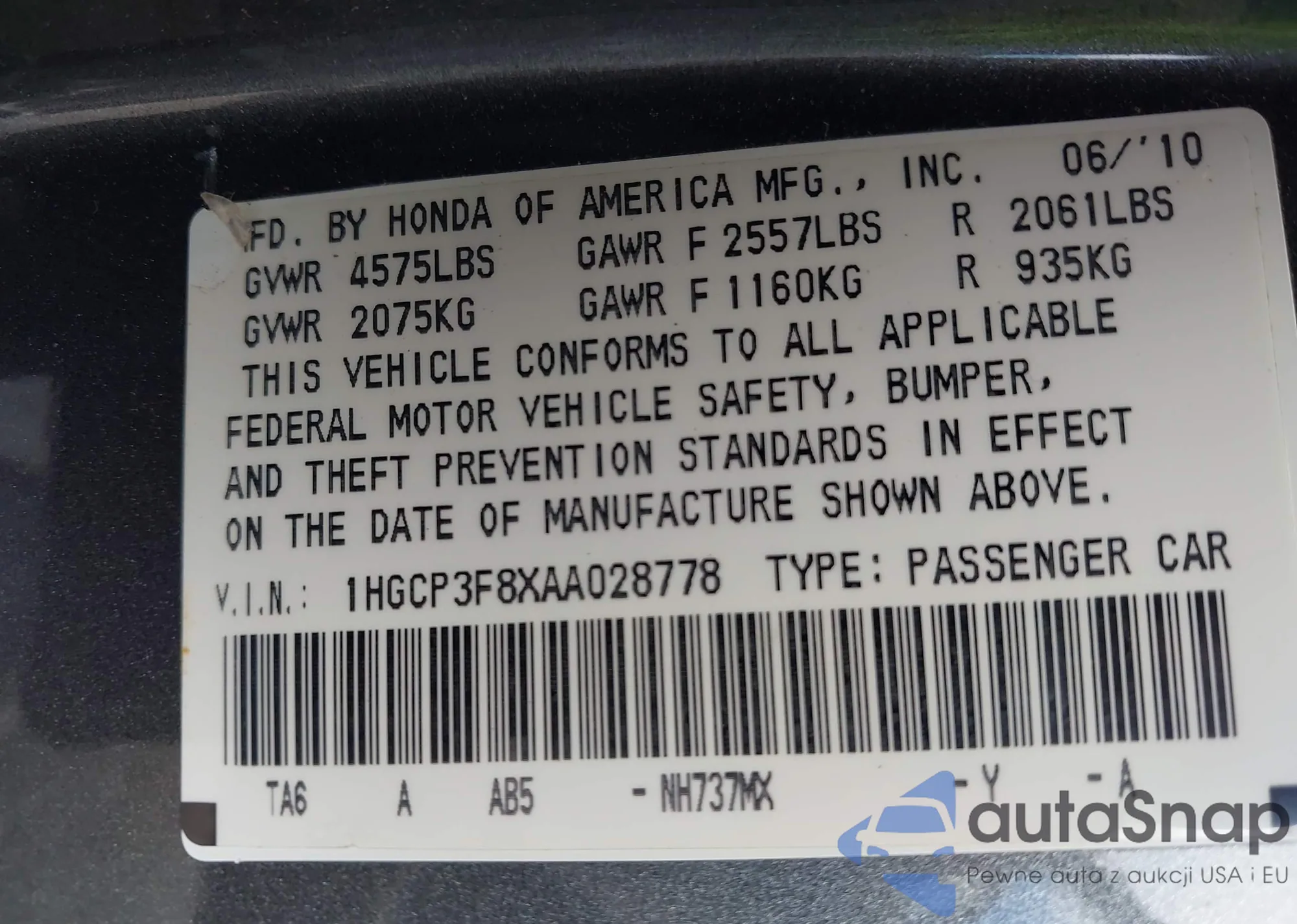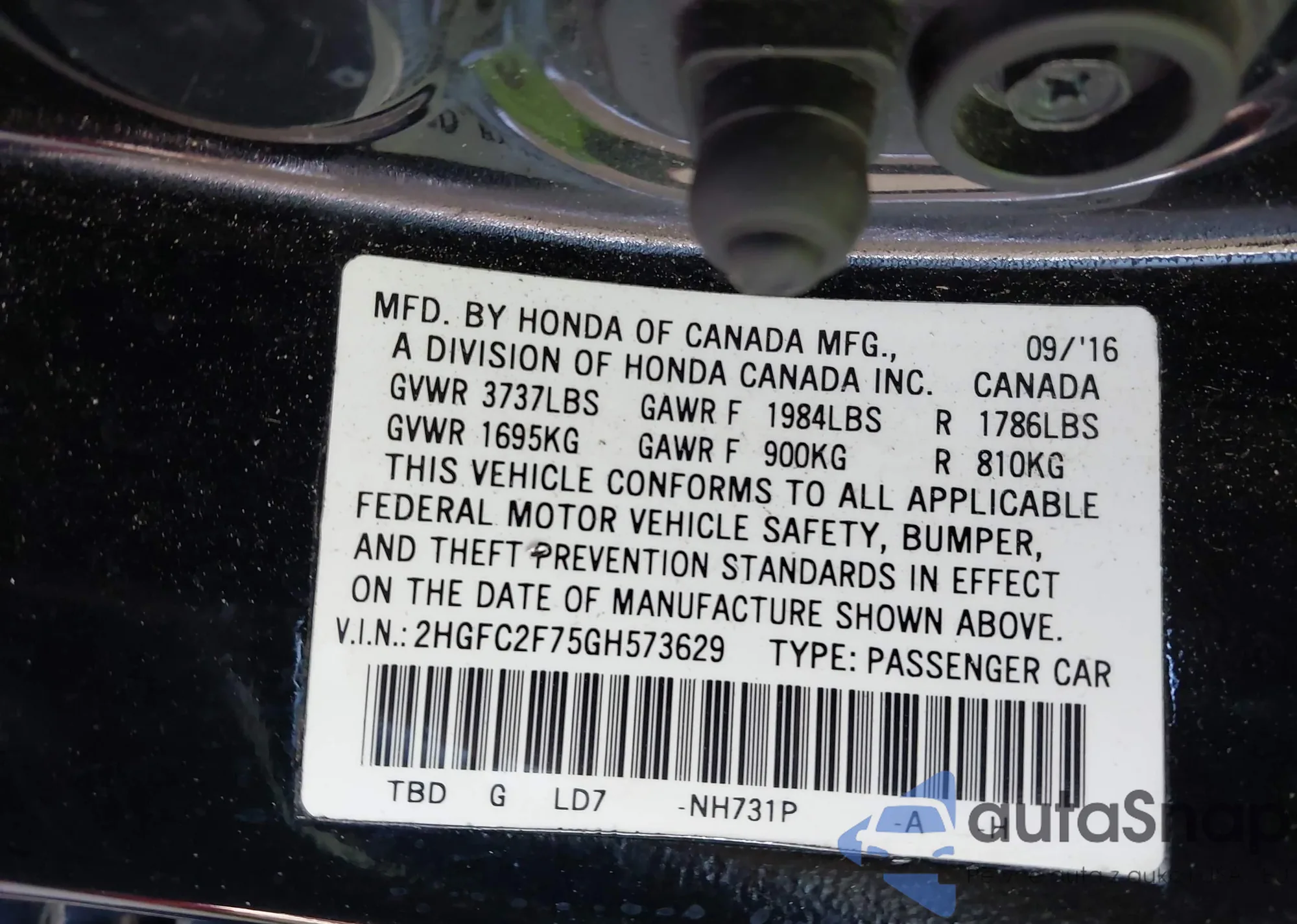 • VIN 2HGFC2F75GH573629
