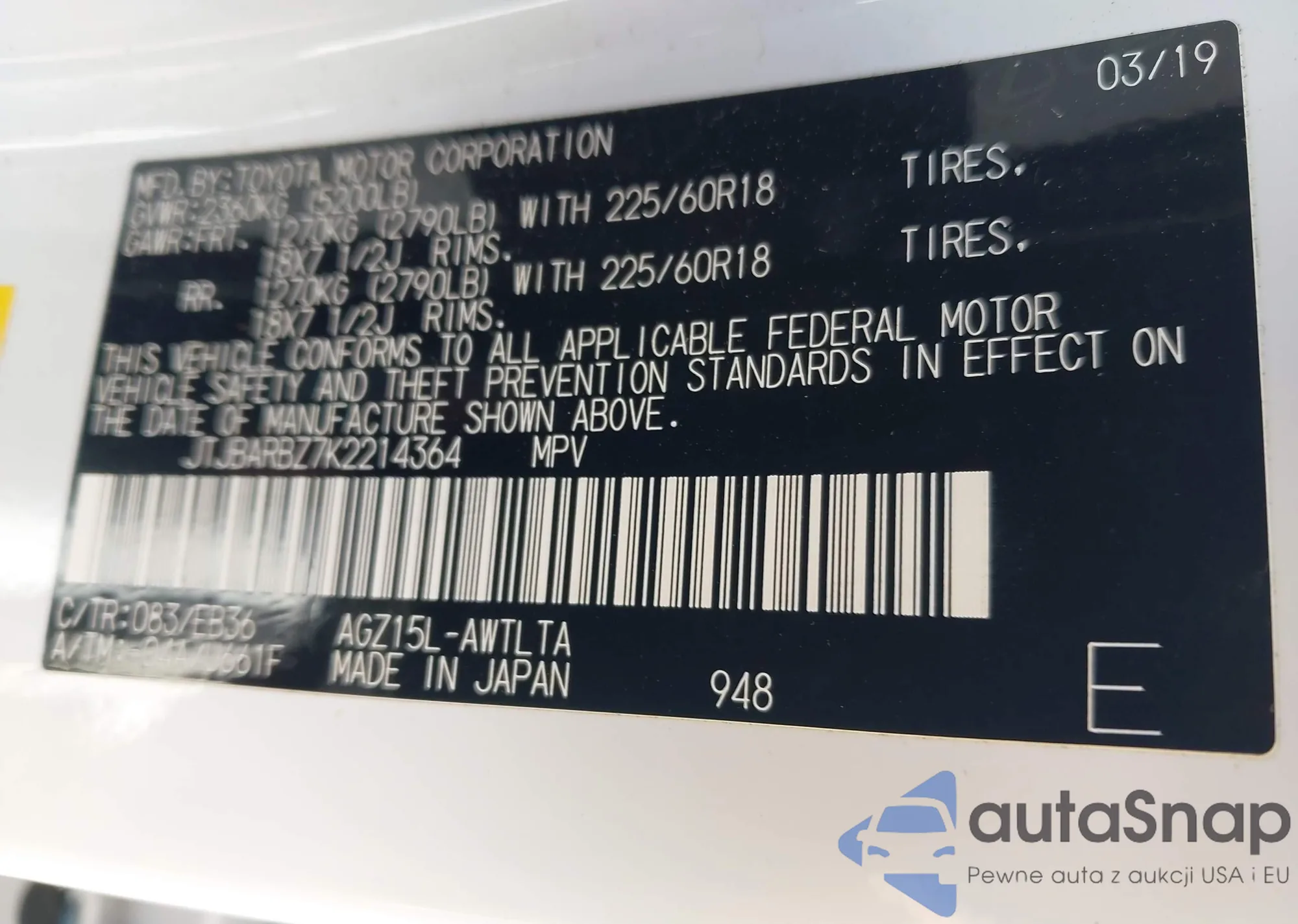 LOT: 43037564 VIN: JTJBARBZ7K2214364