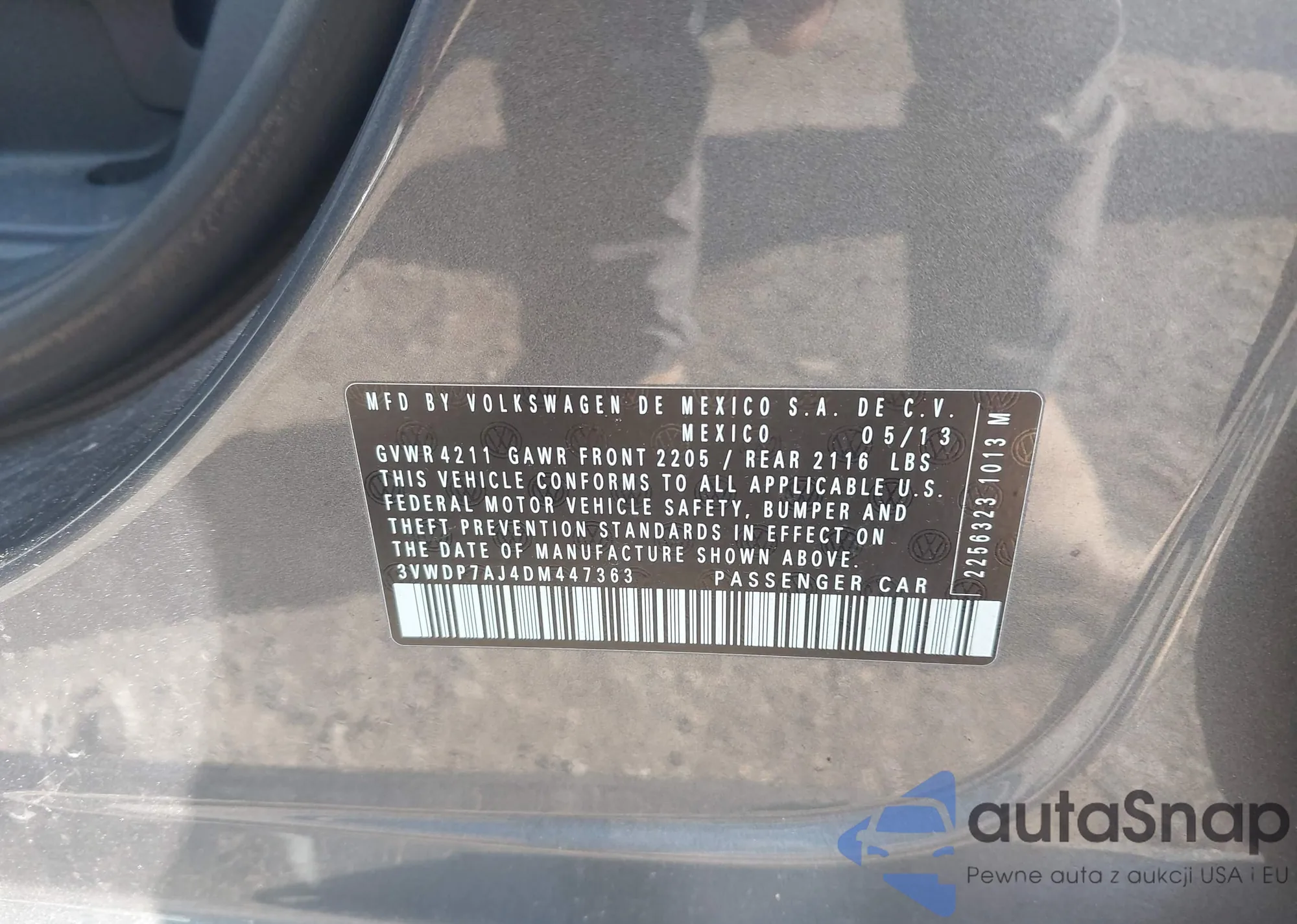 • VIN 3VWDP7AJ4DM447363