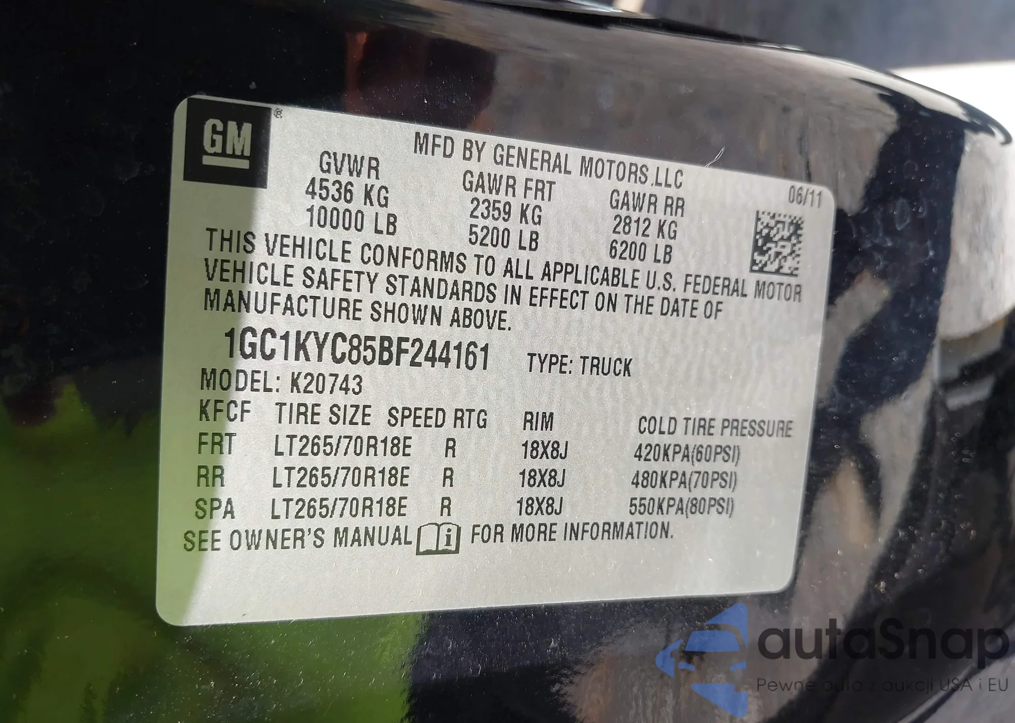 • VIN 1GC1KYC85BF244161