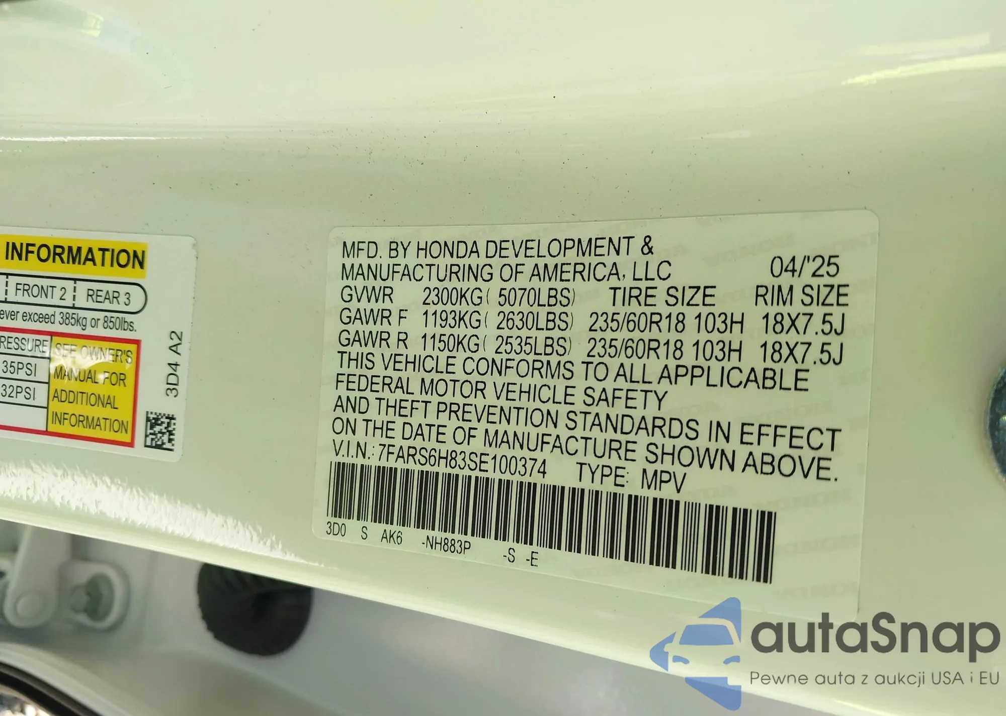• VIN 7FARS6H83SE100374