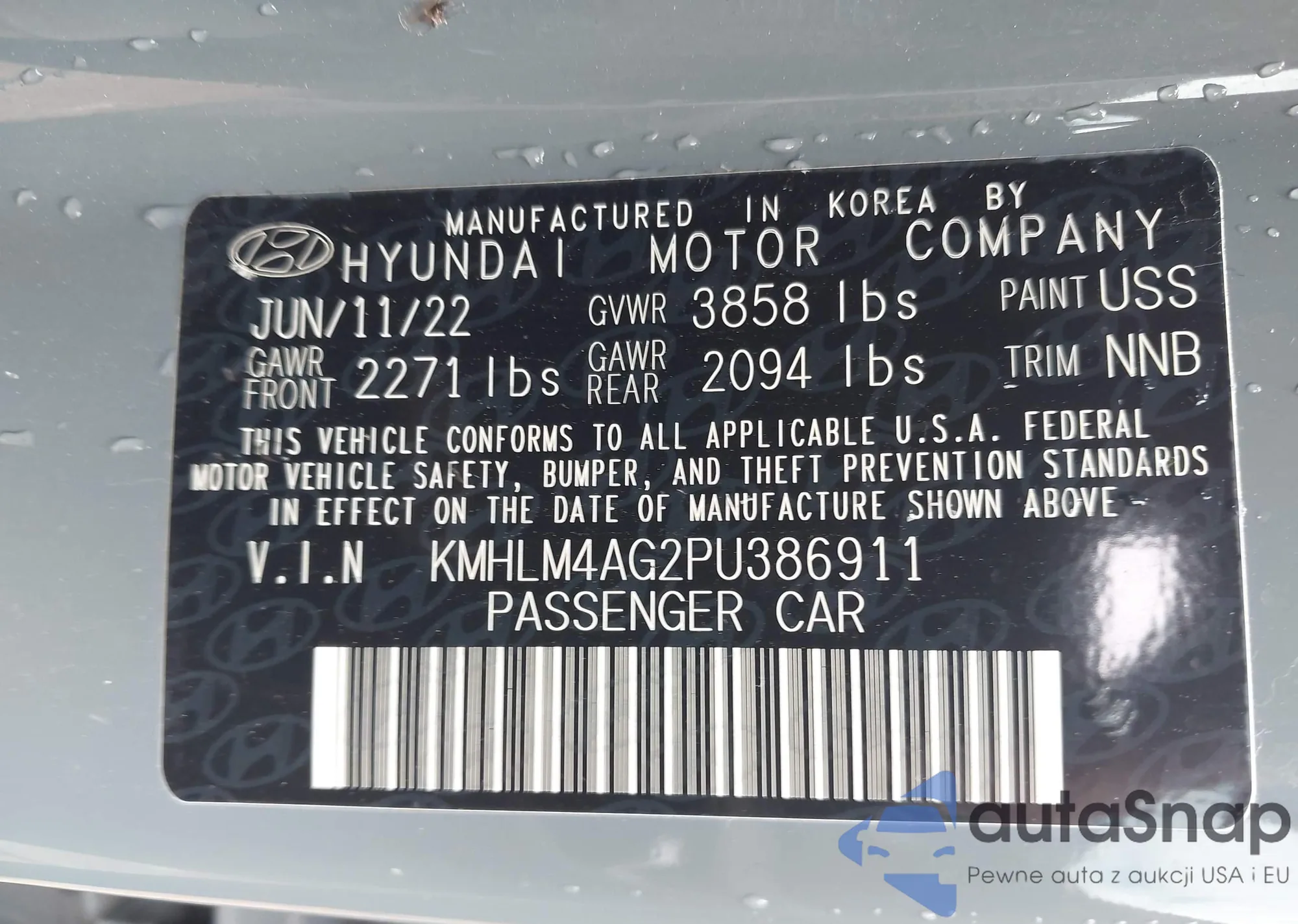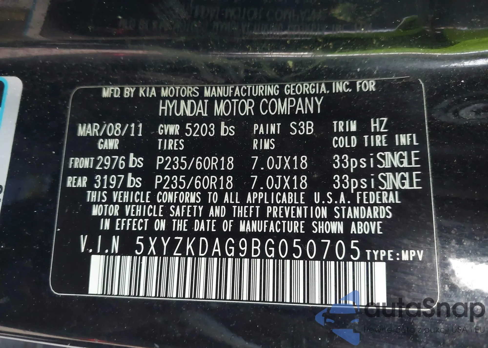 • VIN KMHDB8AE3AU051552