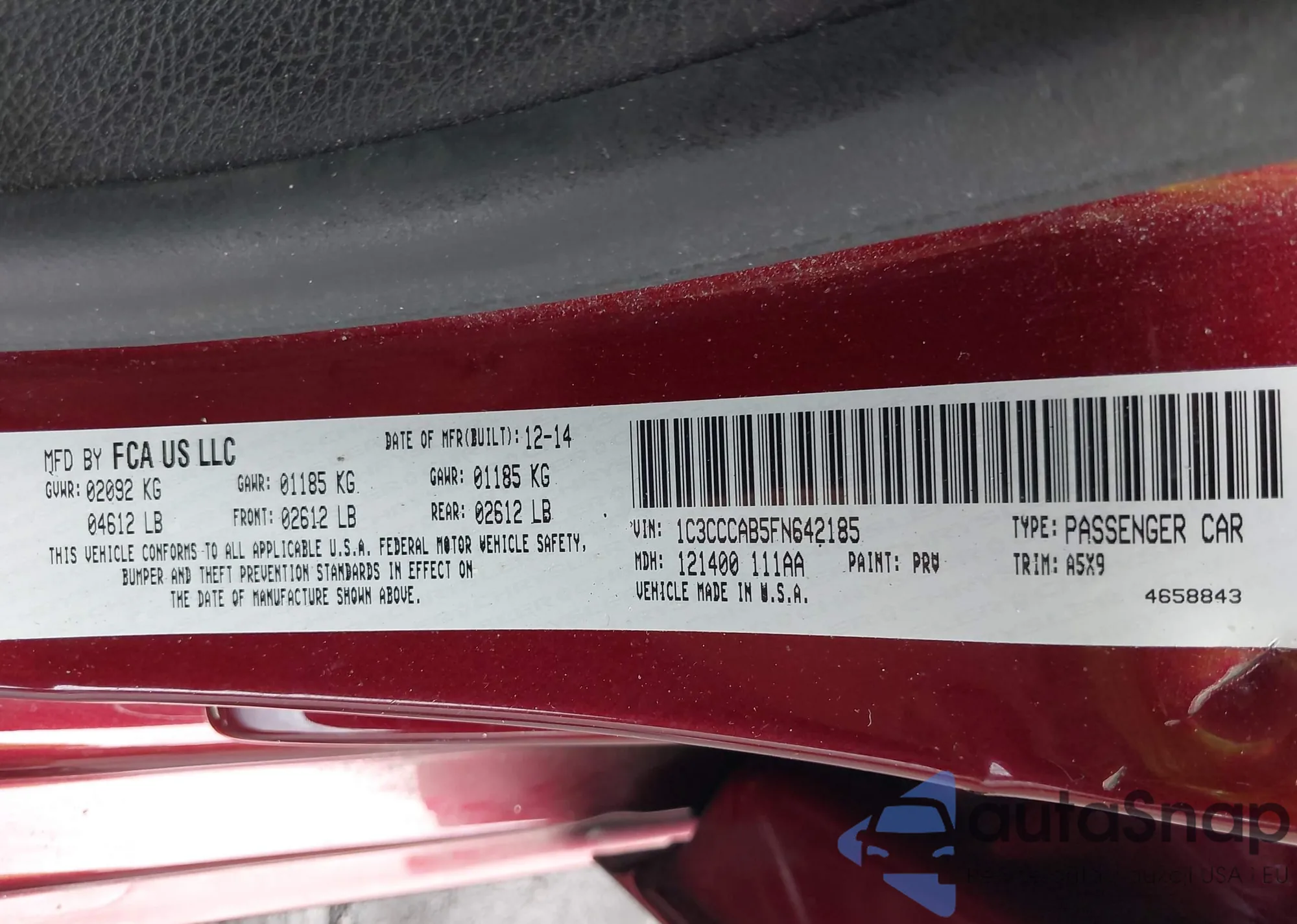 LOT: 43061454 VIN: 1C3CCCAB5FN642185