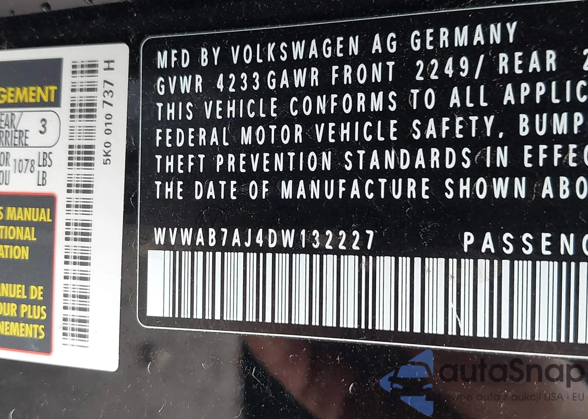 • VIN WVWAB7AJ4DW132227