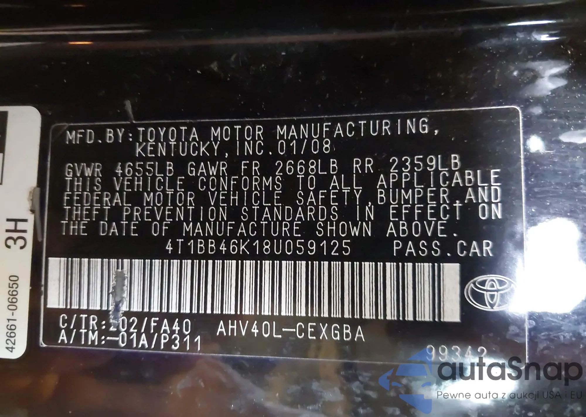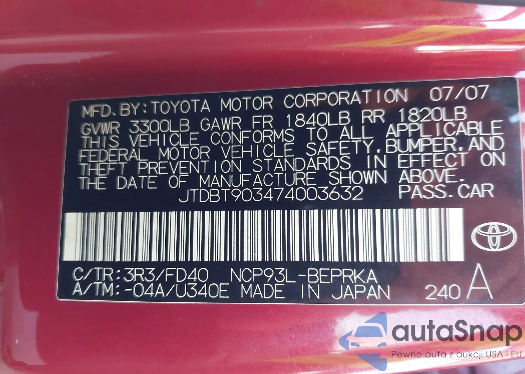 LOT: 43125814 VIN: JTDBT903474003632