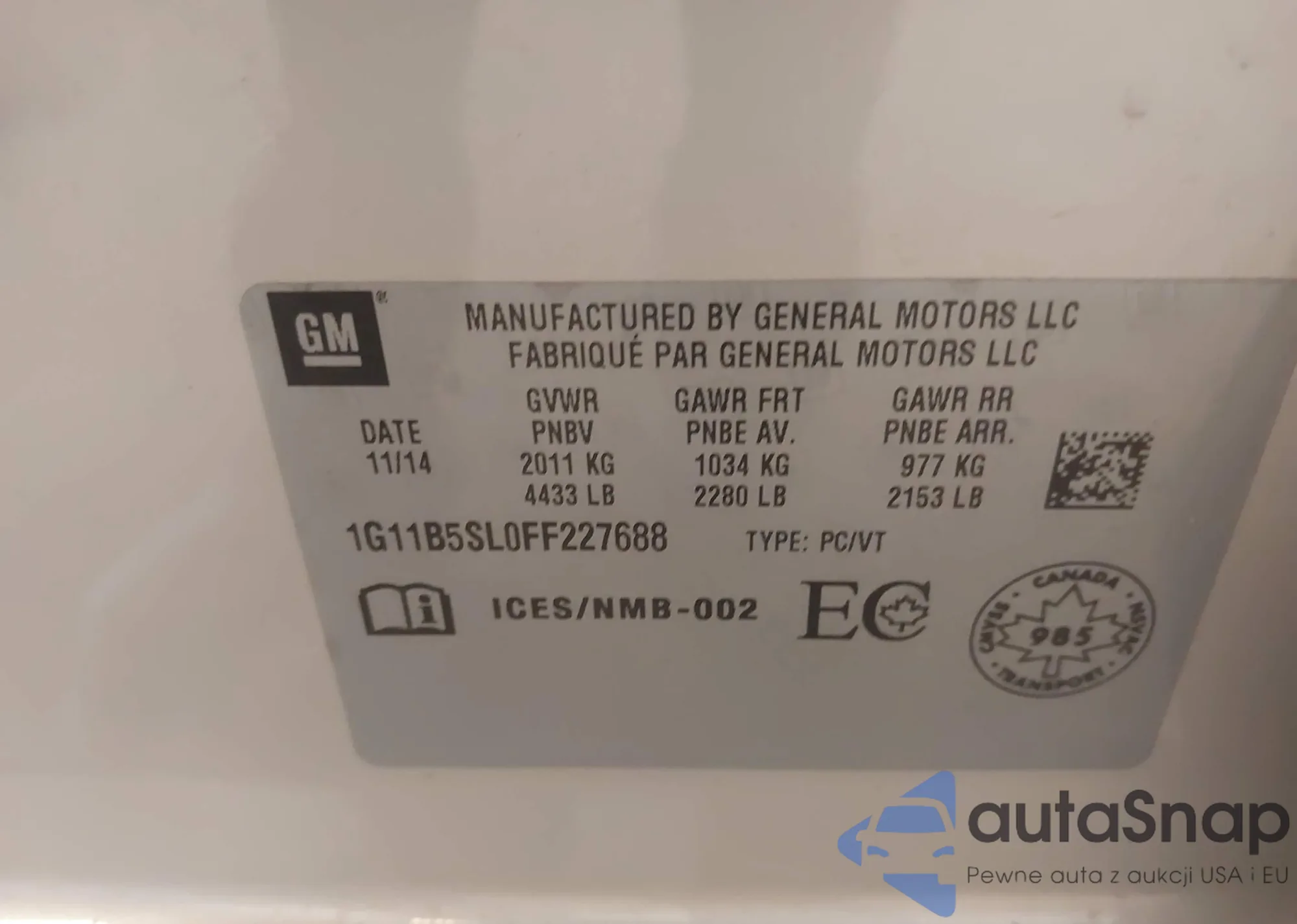 • VIN 1G11B5SL0FF227688