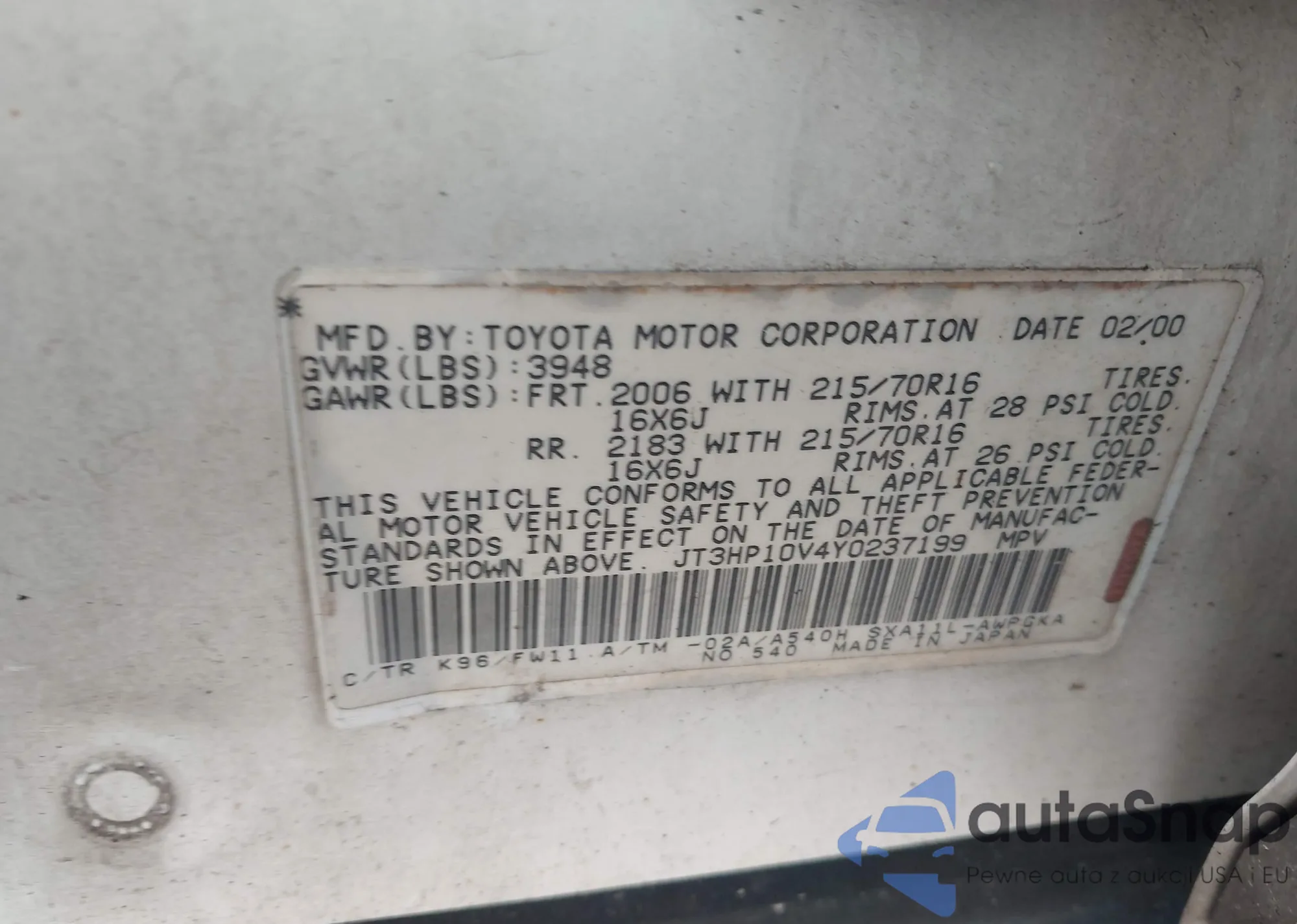 • VIN JT3HP10V4Y0237199