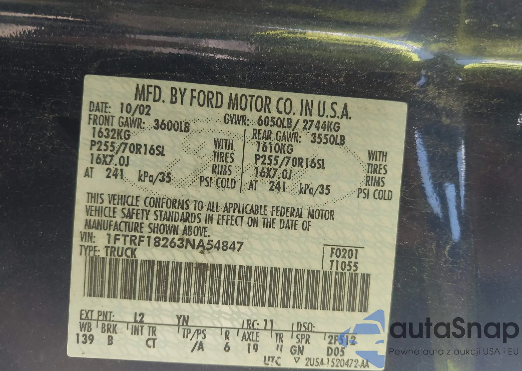 LOT: 43050454 VIN: 1FTRF18263NA5484