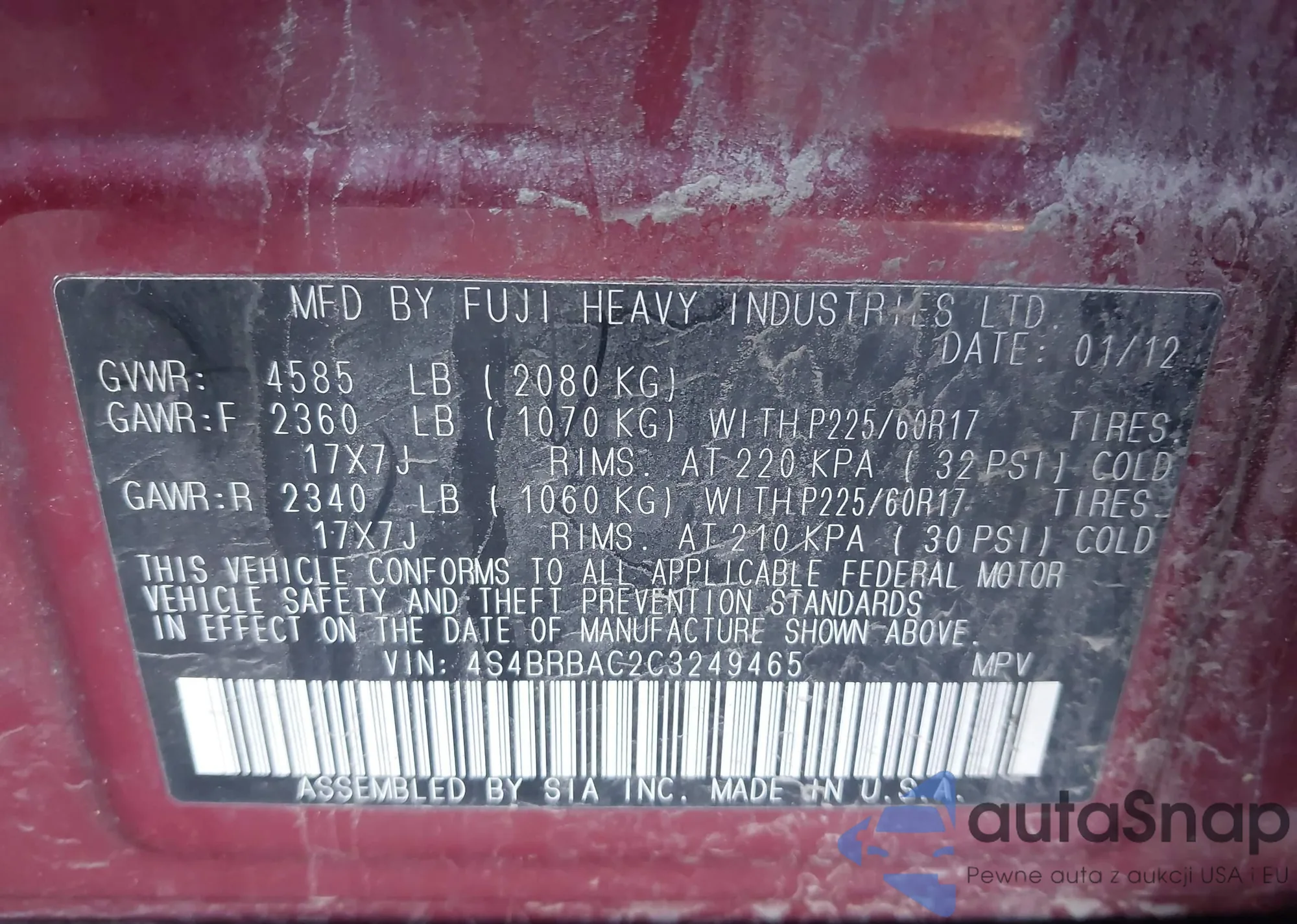 • VIN 5XYKTCA61DG322344