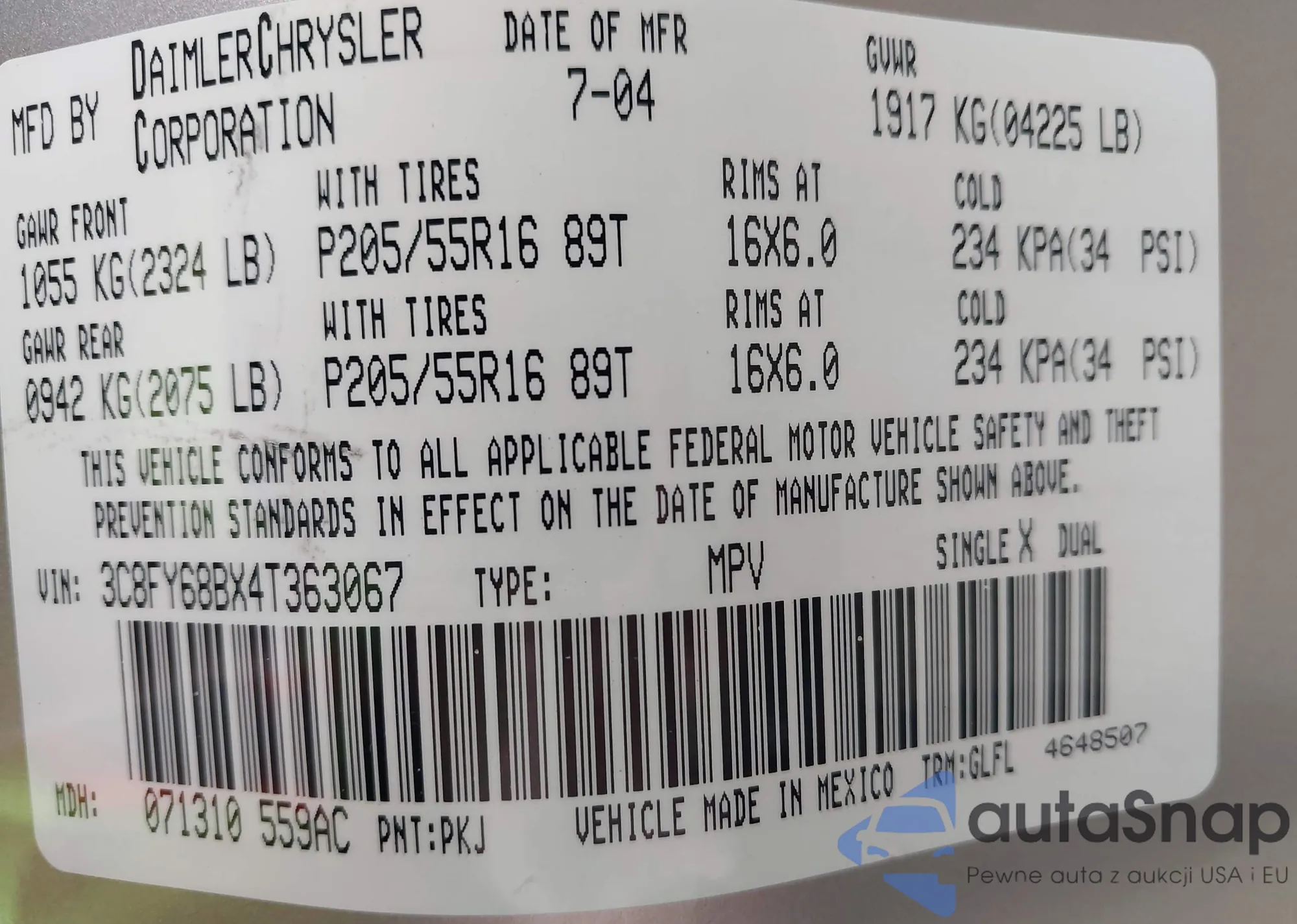 • VIN 3C8FY68BX4T363067
