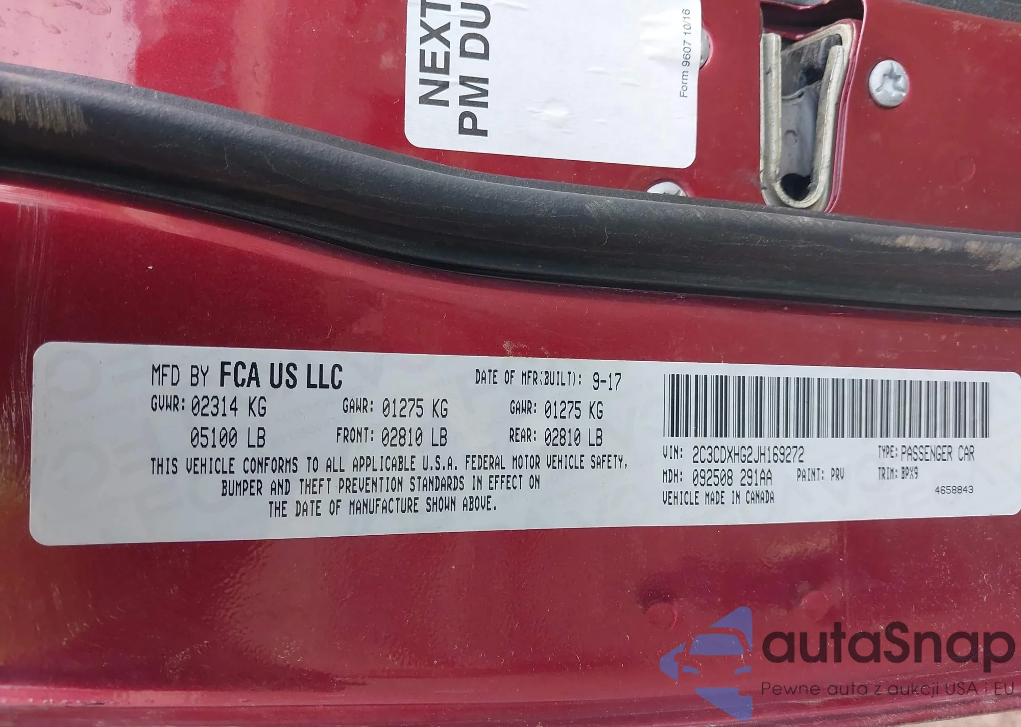 LOT: 41956331 VIN: 2C3CDXHG2JH169272