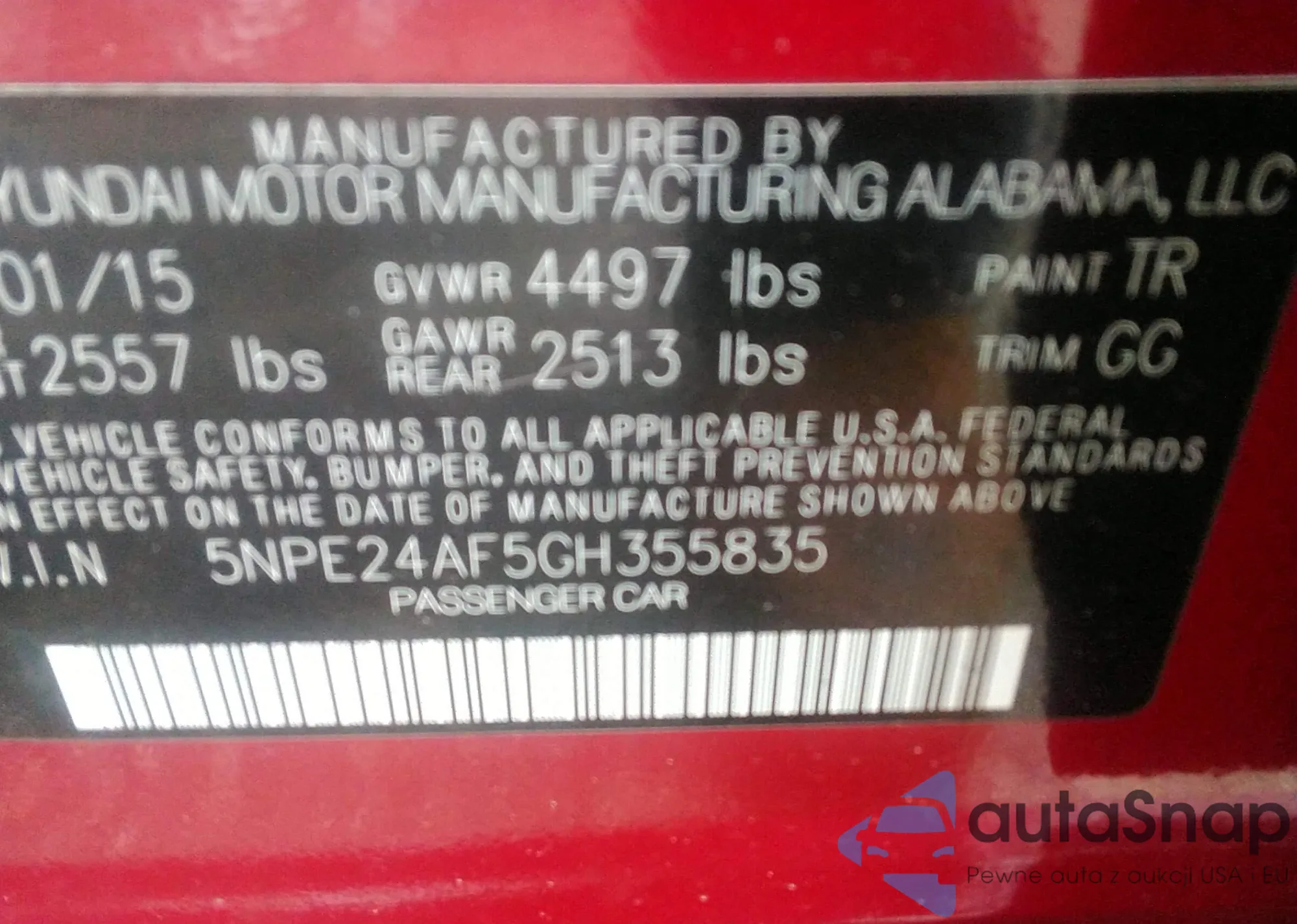 • VIN 5NPE24AF5GH355835
