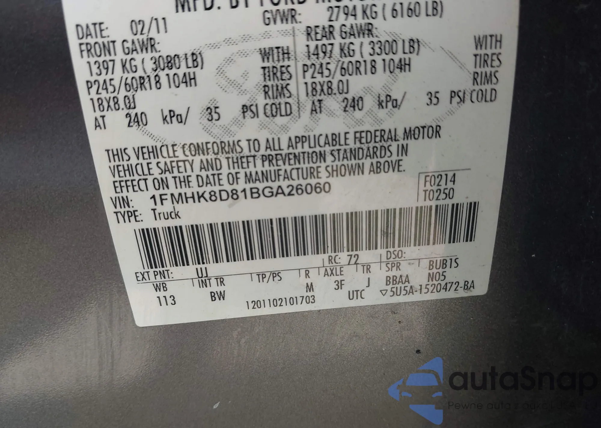 • VIN 1FMHK8D81BGA26060