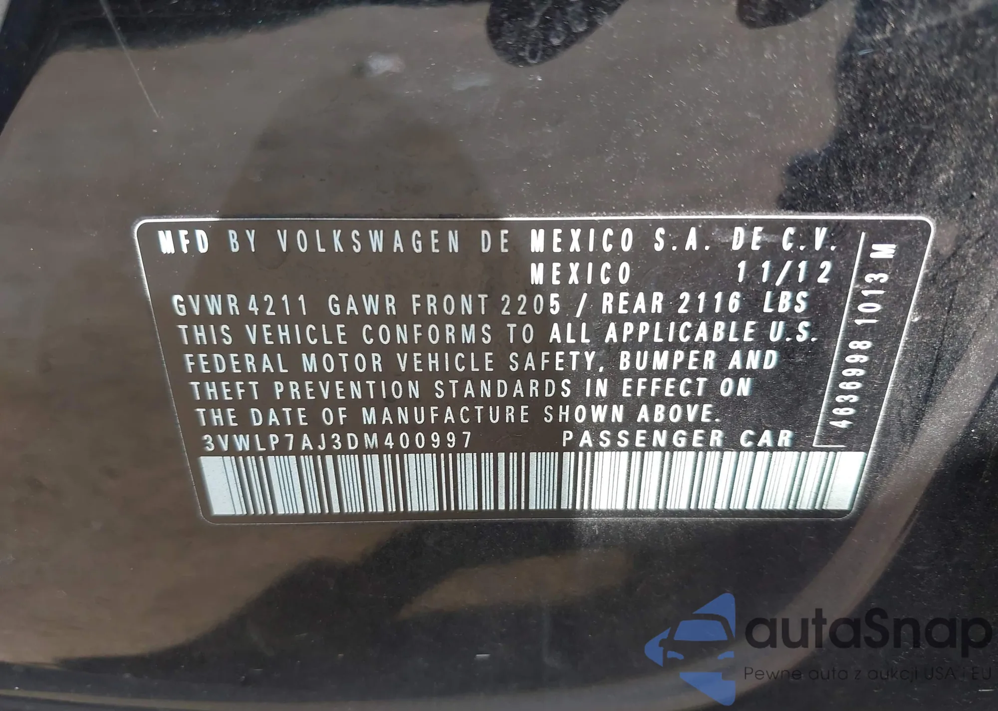 • VIN 1C4PJMBX6KD364349