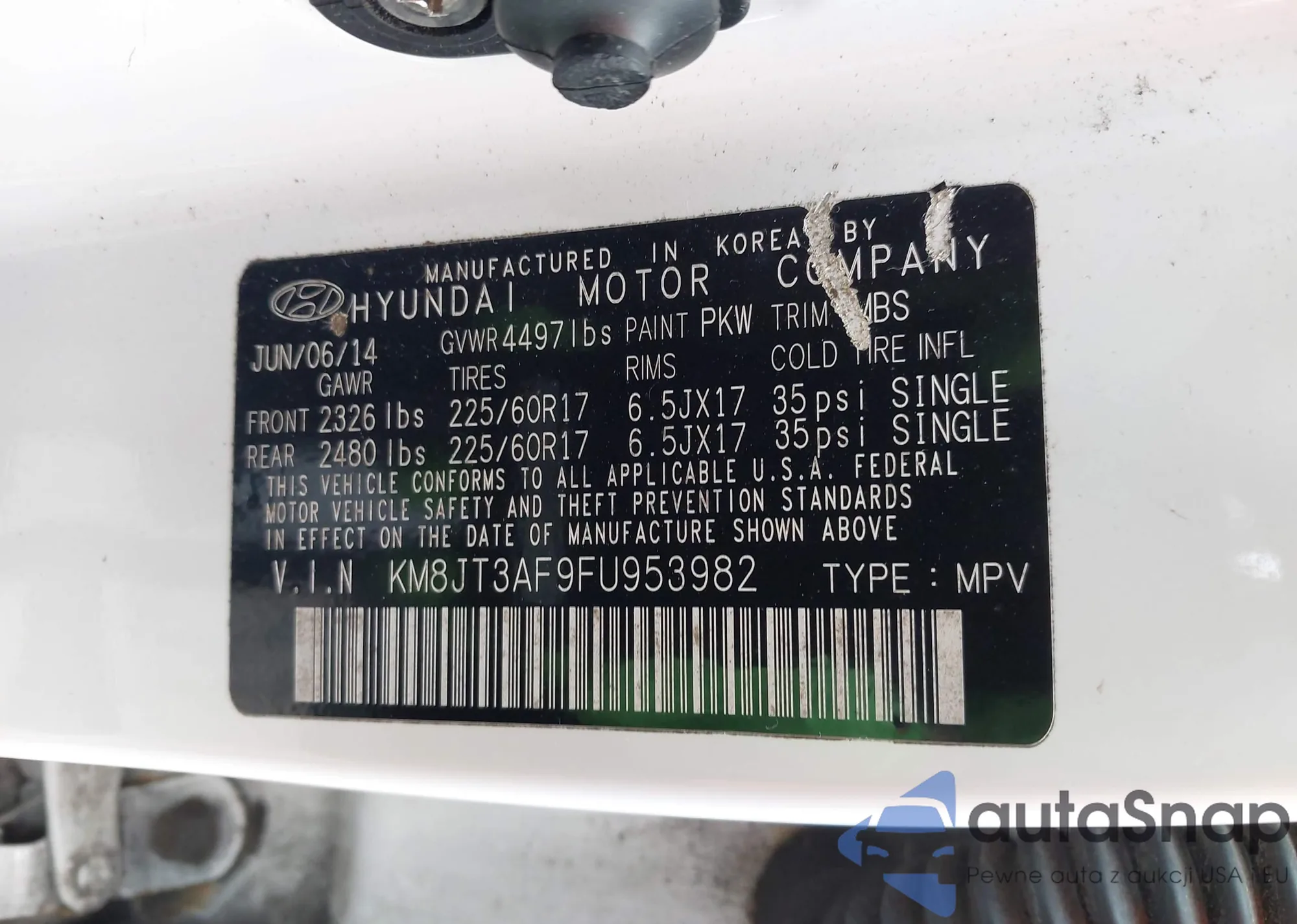 LOT: 42611399 VIN: KM8JT3AF9FU953982