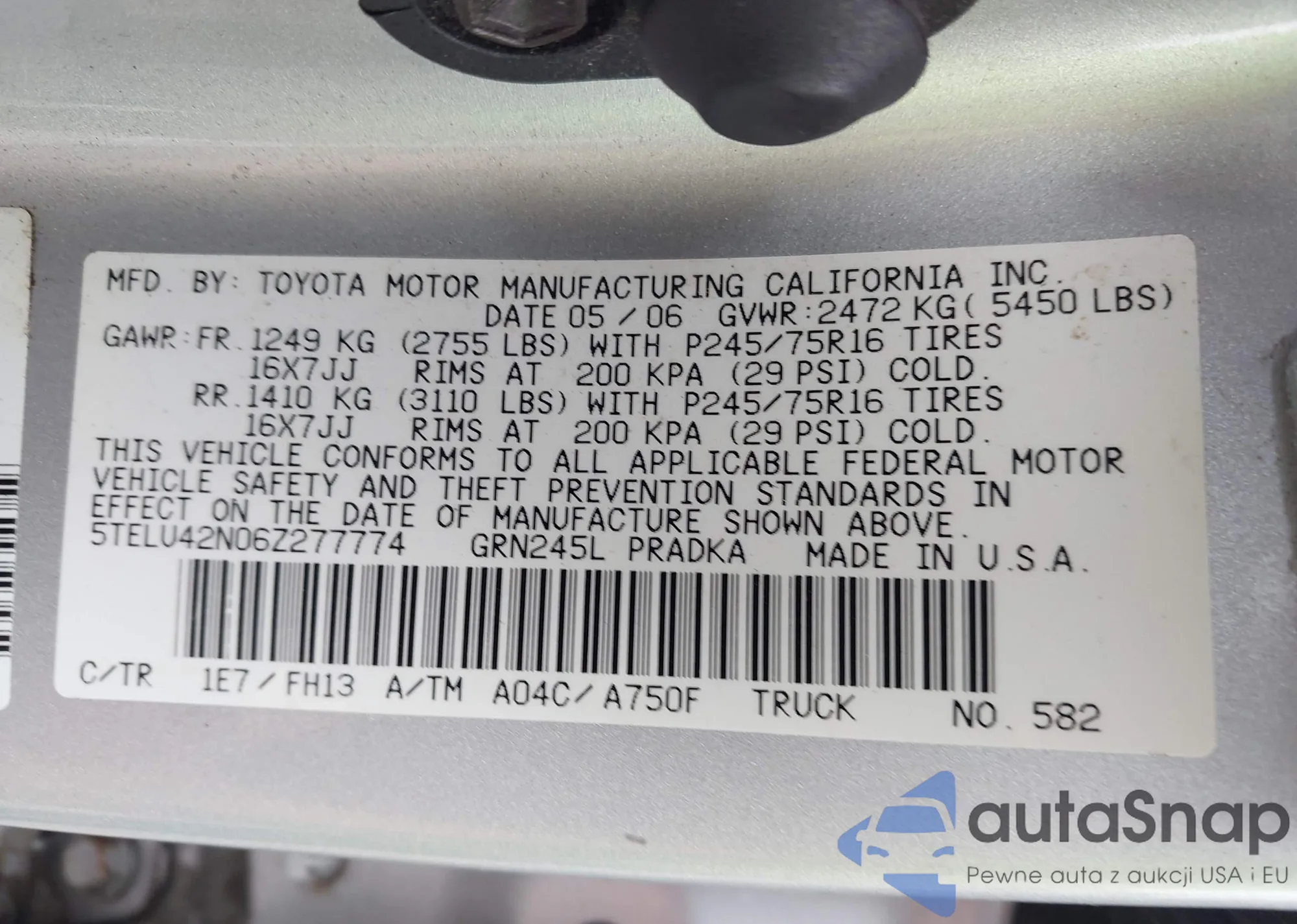 • VIN 5TELU42N06Z277774