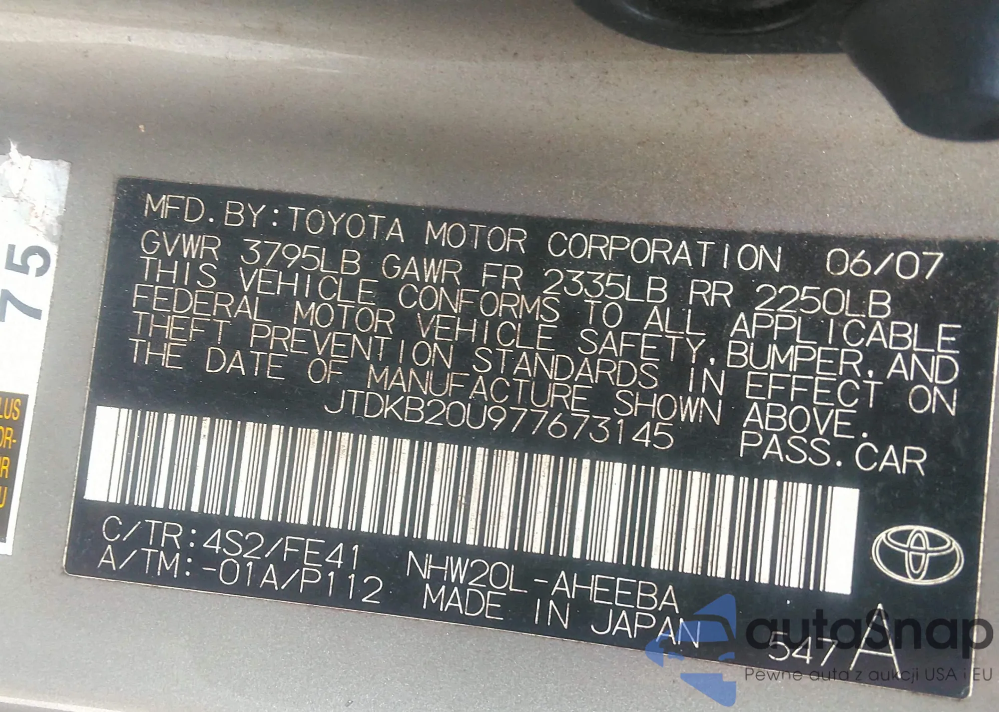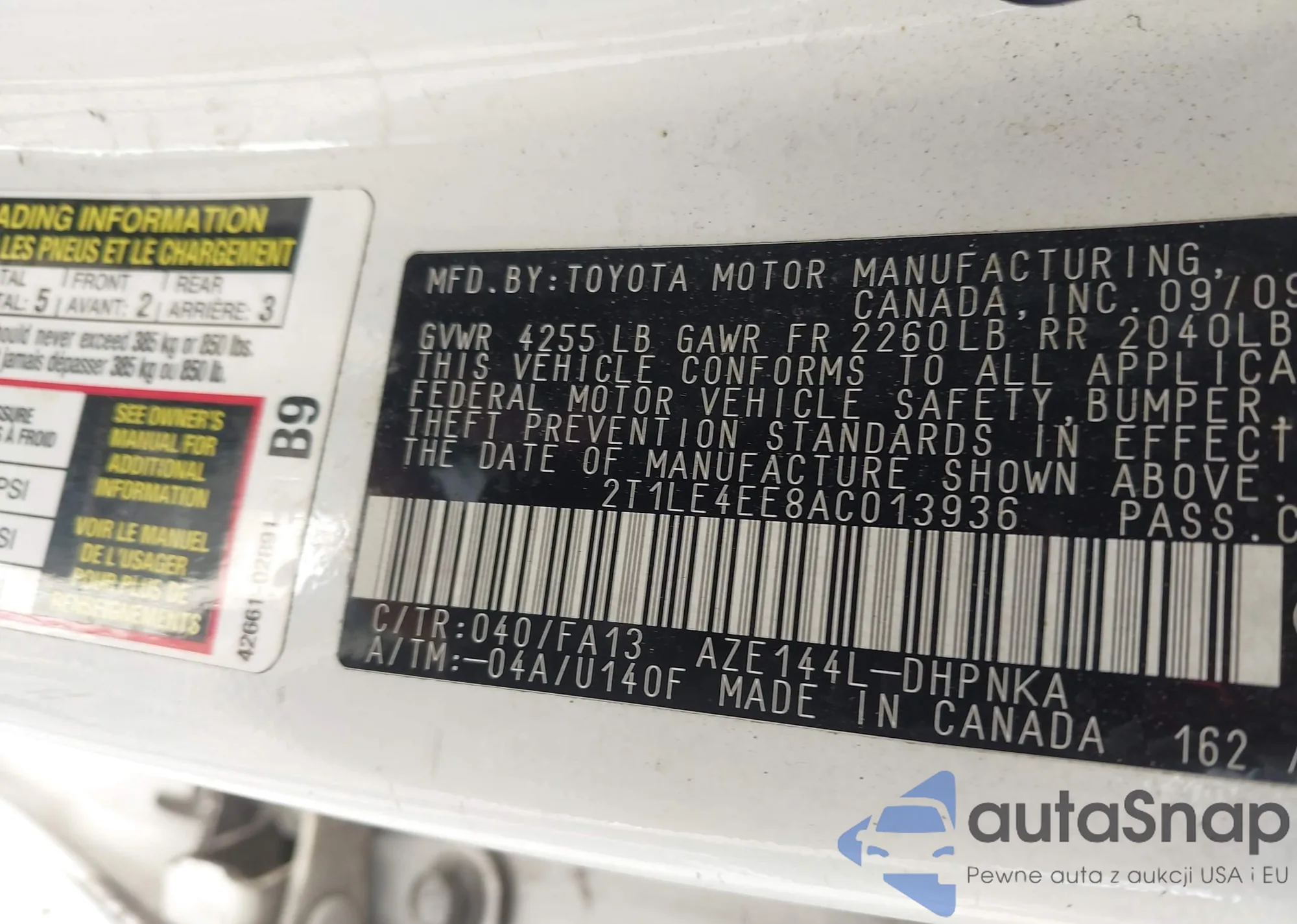 • VIN 2T1LE4EE8AC013936