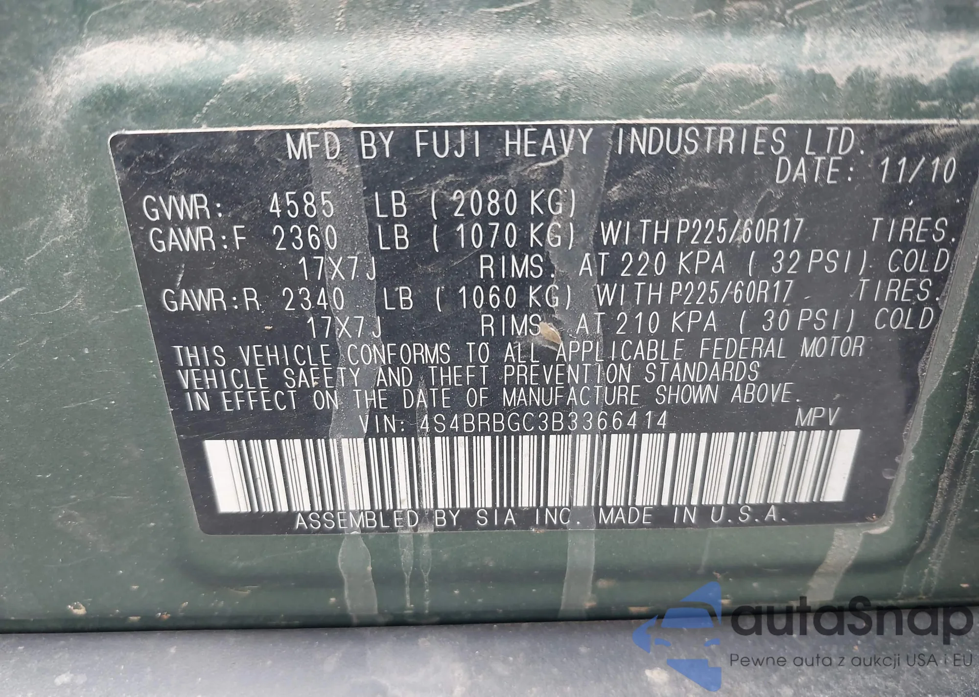 • VIN 4S4BRBGC3B3366414
