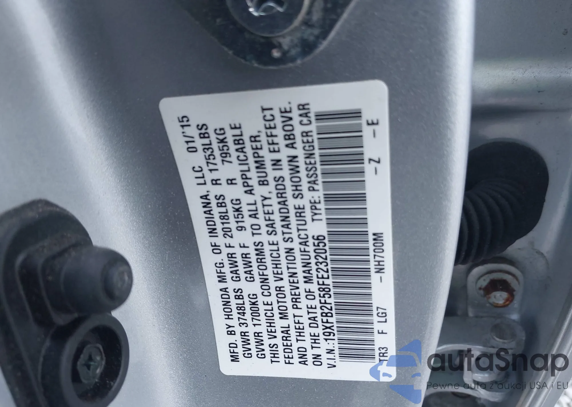 LOT: 43102718 VIN: 19XFB2F58FE232056