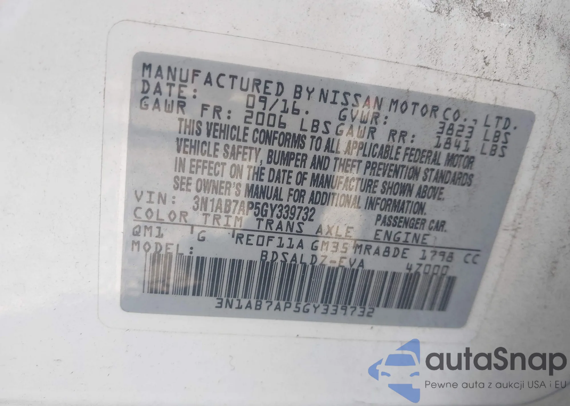 LOT: 42376168 VIN: 1N4AL11D24C156859