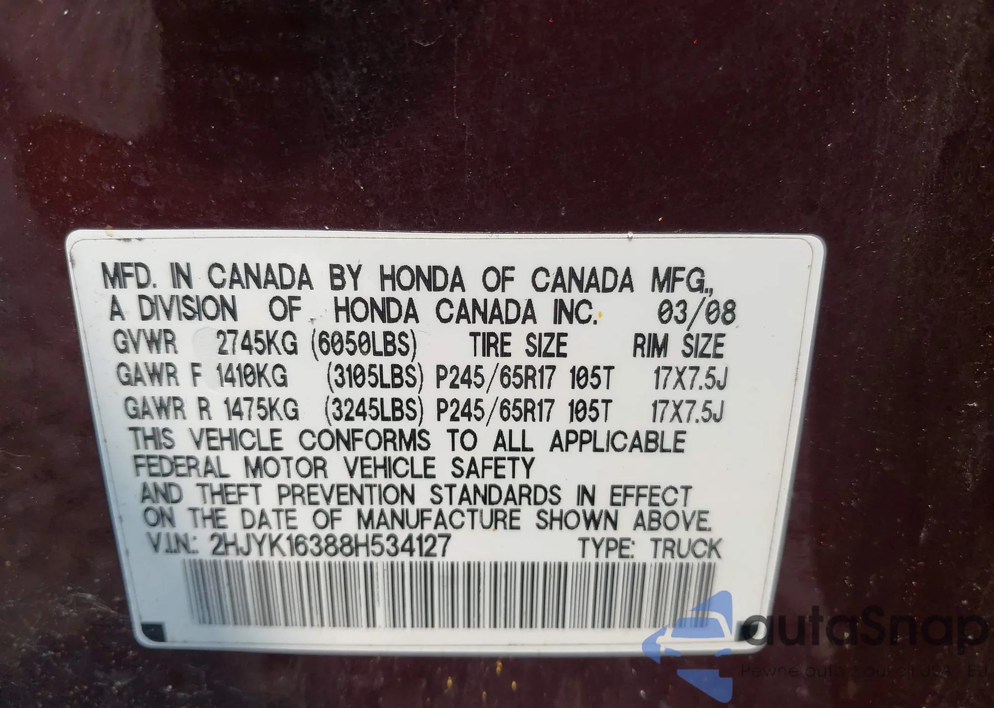 • VIN 2HJYK16388H534127