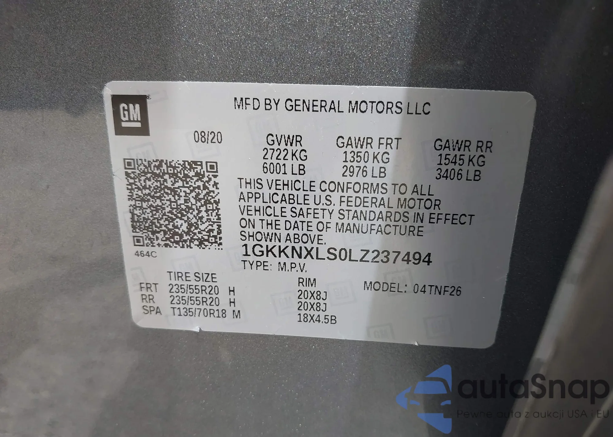 LOT: 42838118 VIN: 5GAKRCKD9DJ158323