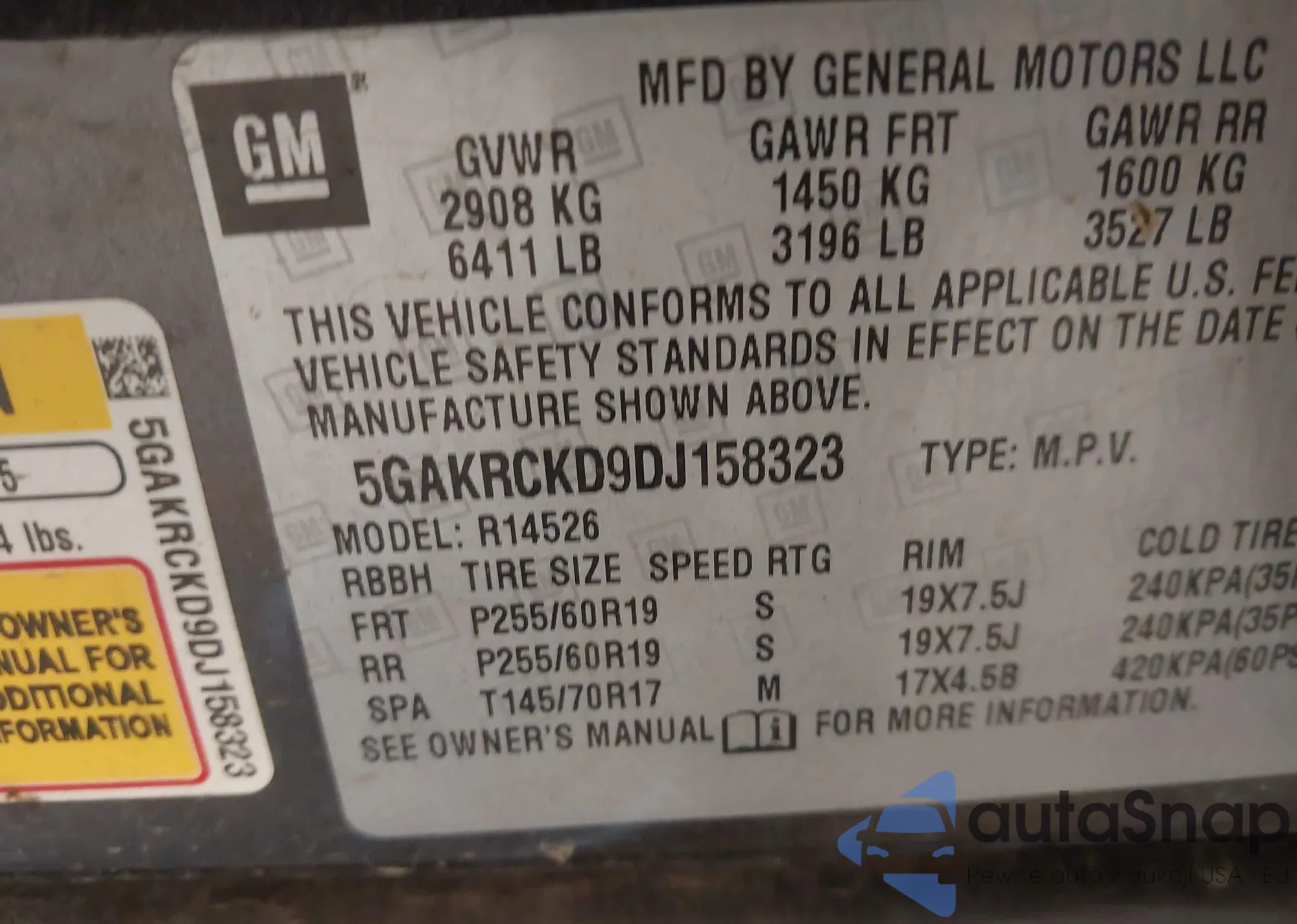 • VIN 5GAKRCKD9DJ158323