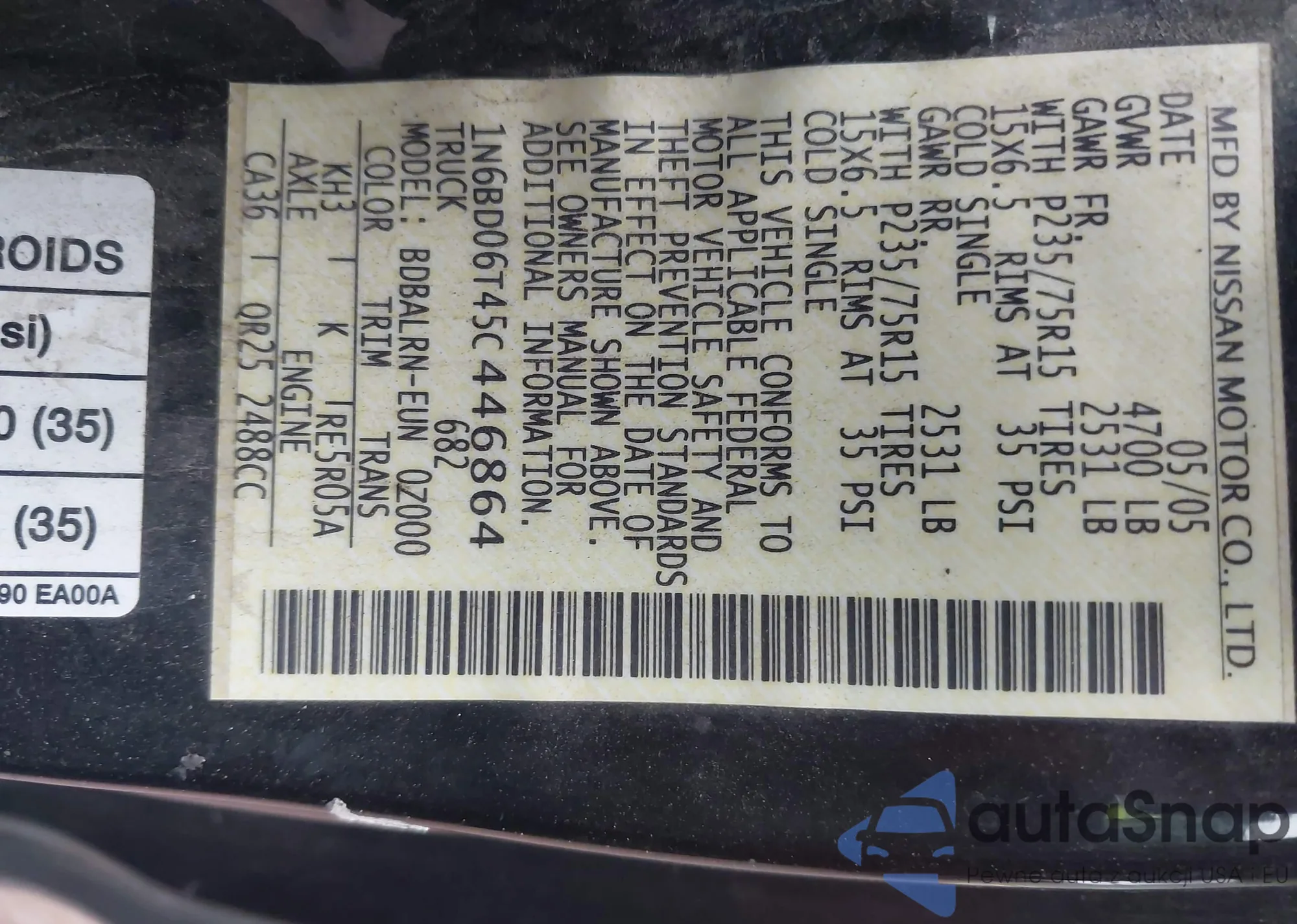 • VIN 1N6BD06T45C446864